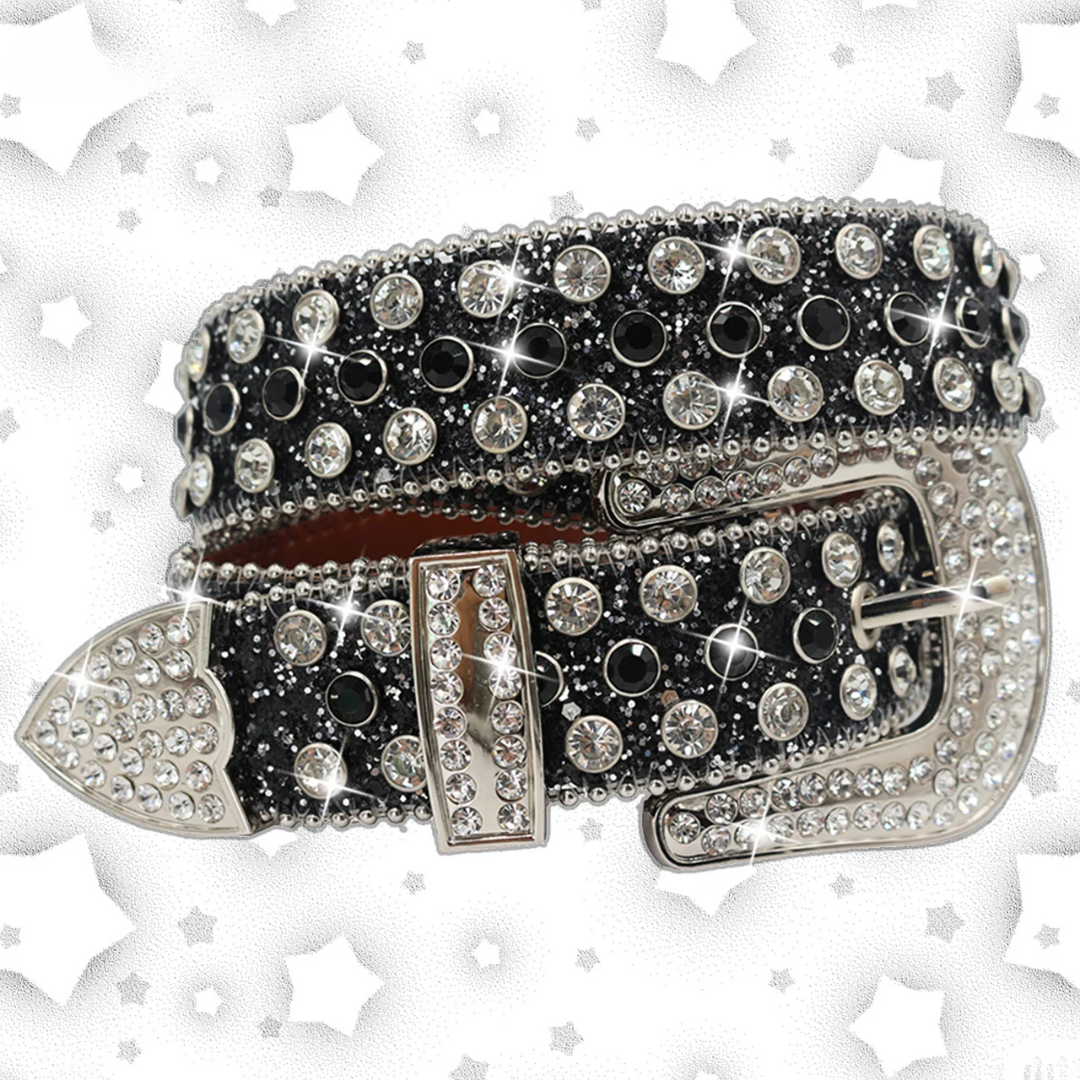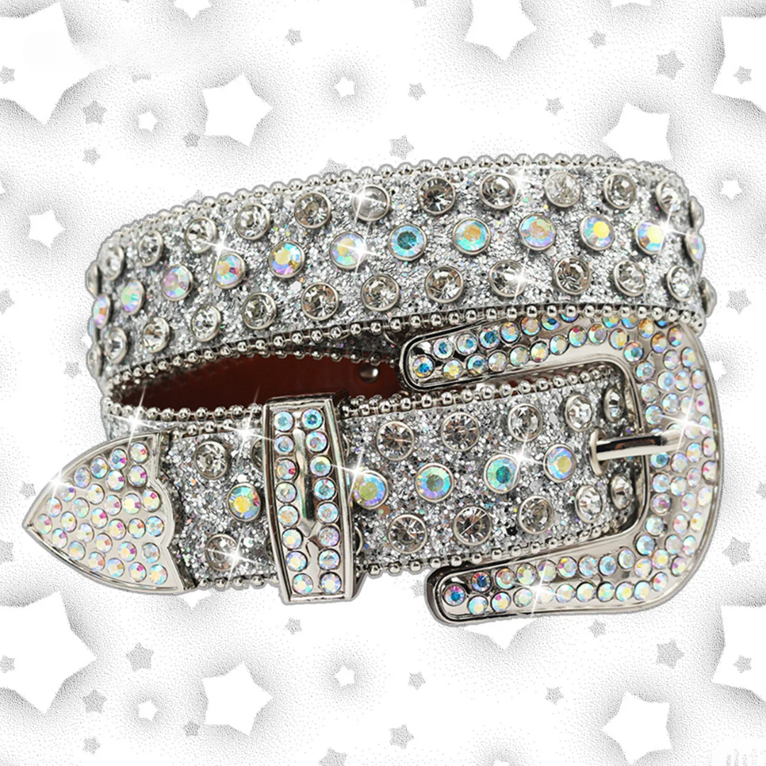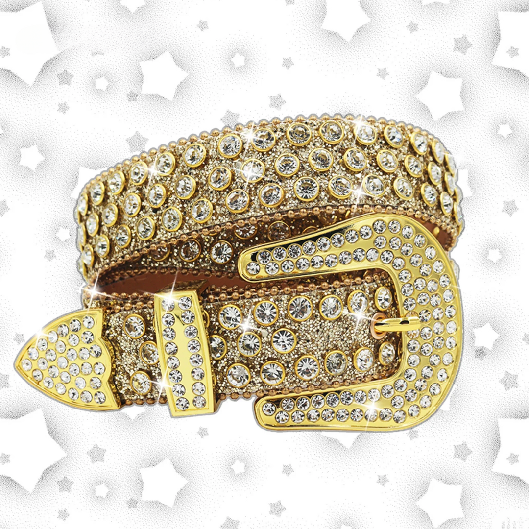 A statement piece, a dazzling accessory that will transform any outfit into a head-turning ensemble. Adorned with shimmering rhinestones and a crystal-studded buckle, this belt is designed to add a touch of glamour to your everyday style.