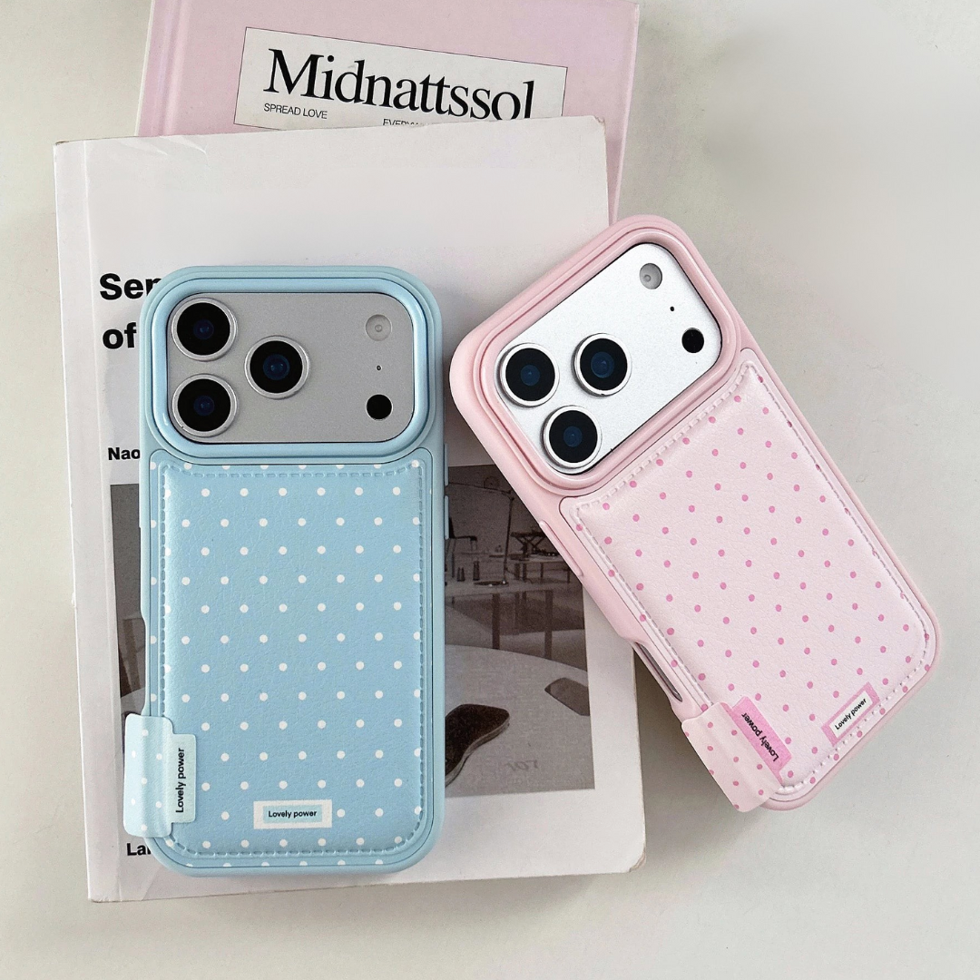 A playful nod to mid-century printwork, this case features neatly spaced pin-dots over a satin-finish surface that feels cool and smooth in the hand. The pastel palette makes it an effortless match for minimal outfits and desk-side styling.