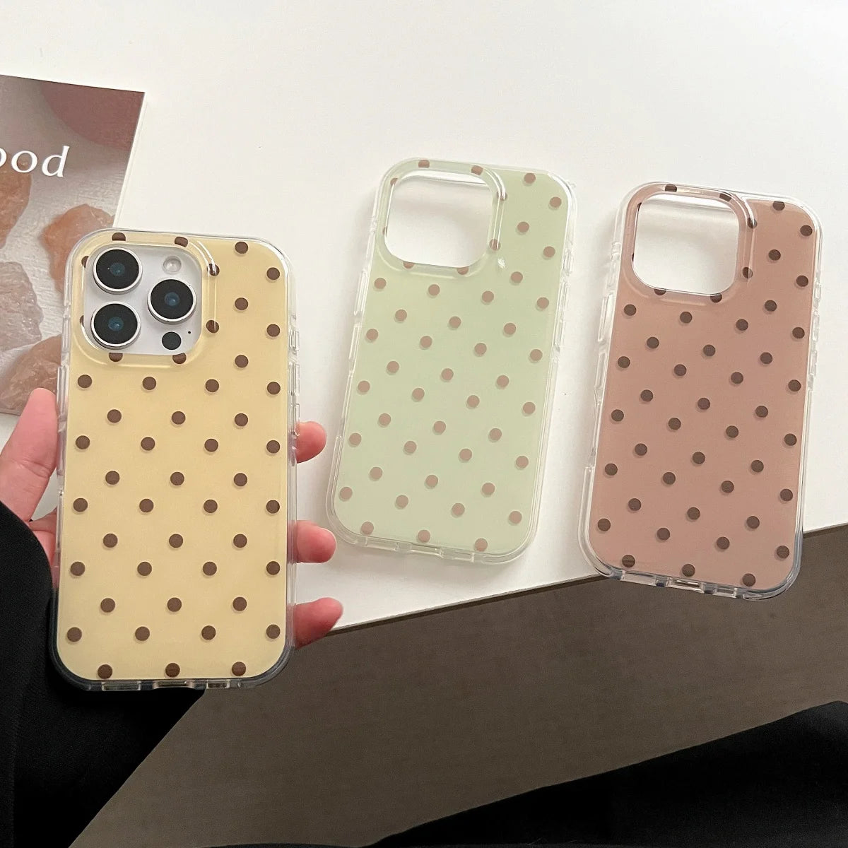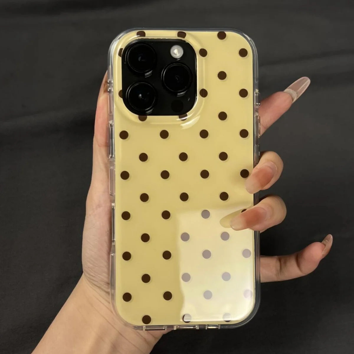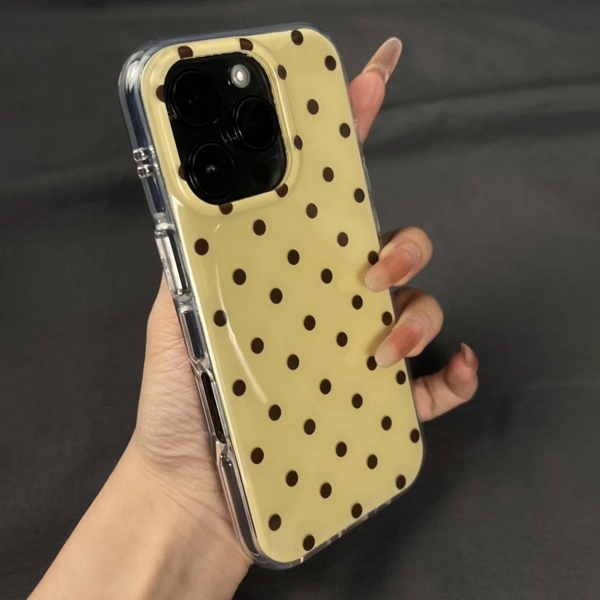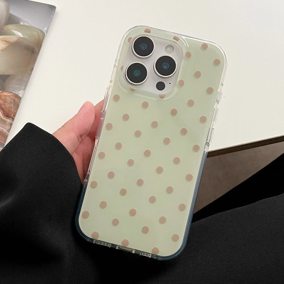 Playful meets polished: the DotGloss Jelly Shield wraps your iPhone in a high‑clarity, glossy polka‑dot IMD print that won’t fade or yellow. Slim yet protective, its shock‑absorbing edges and raised camera lip keep your phone chic and safe from daily knocks.