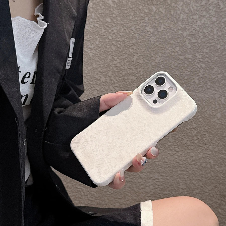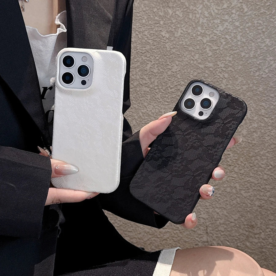 An elegant hard‑shell case dressed in a refined lace relief, finished with a slim, shock‑absorbing bumper. It protects like armour while looking couture, turning your phone into a black‑tie accessory.