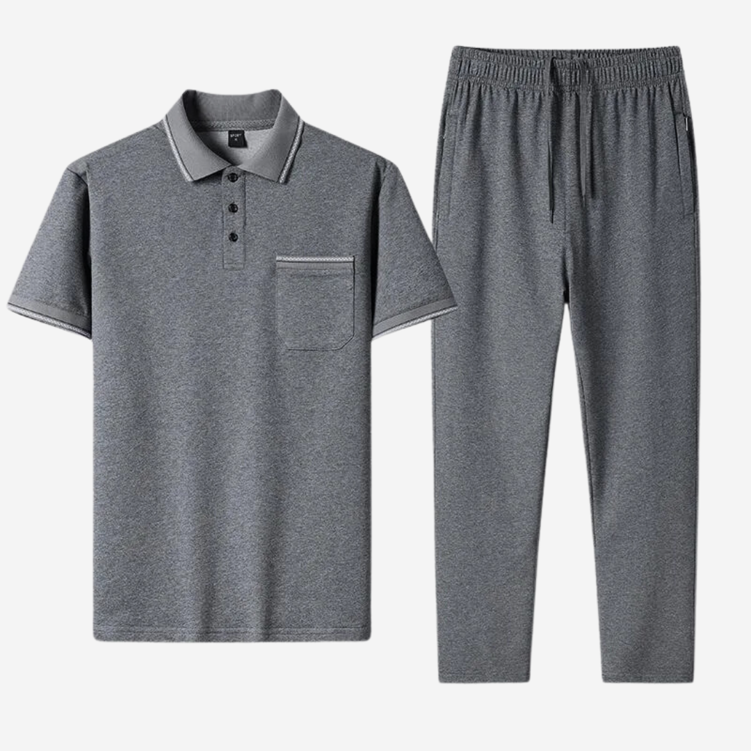 The Dylan & Cole Athleisure Set offers classic polo shirts with modern details, reflecting Dylan's timeless charm, and sleek joggers with a tapered fit for athletic performance, inspired by Cole. This premium collection features breathable, moisture-wicking fabric for optimal comfort and performance during any activity.