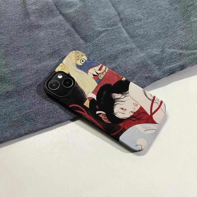 An artful ukiyo‑e muse with her guardian beast is cropped like a gallery print across a soft‑touch back. A color‑matched camera ring, cushioned edges, and precise buttons keep it slim, grippy, and everyday‑drop ready.