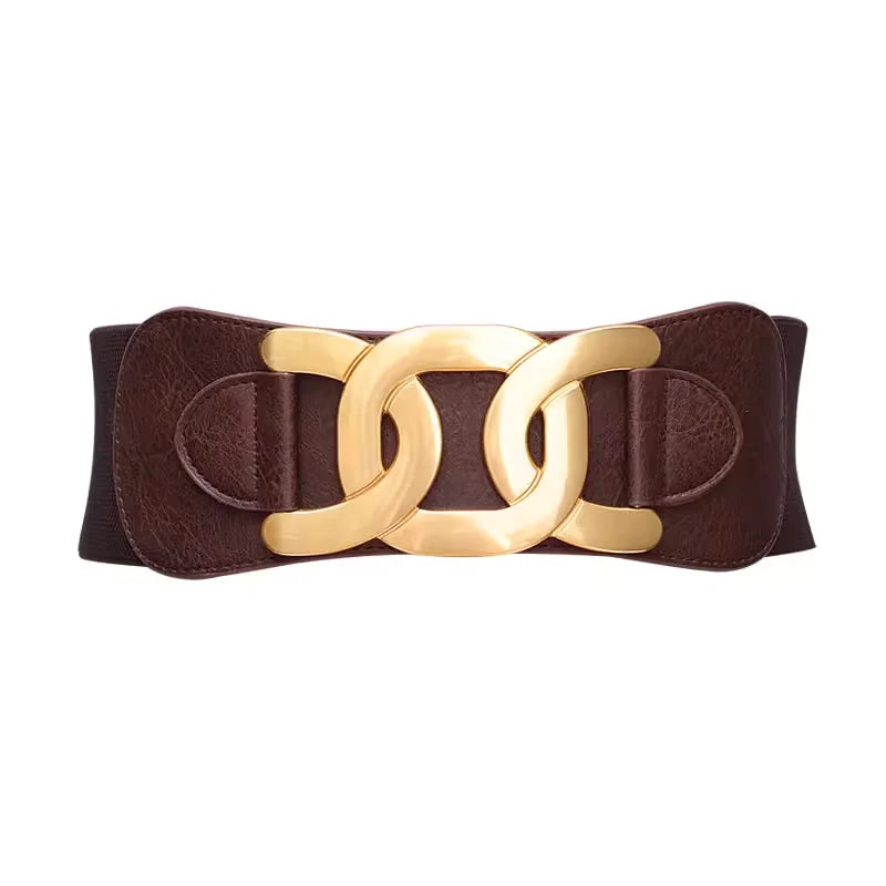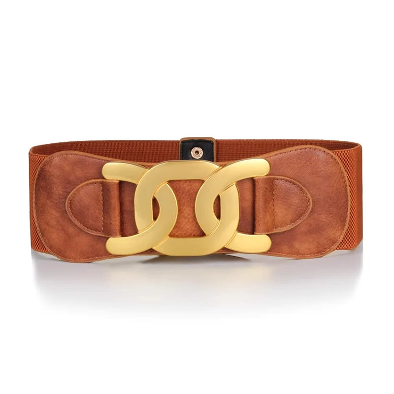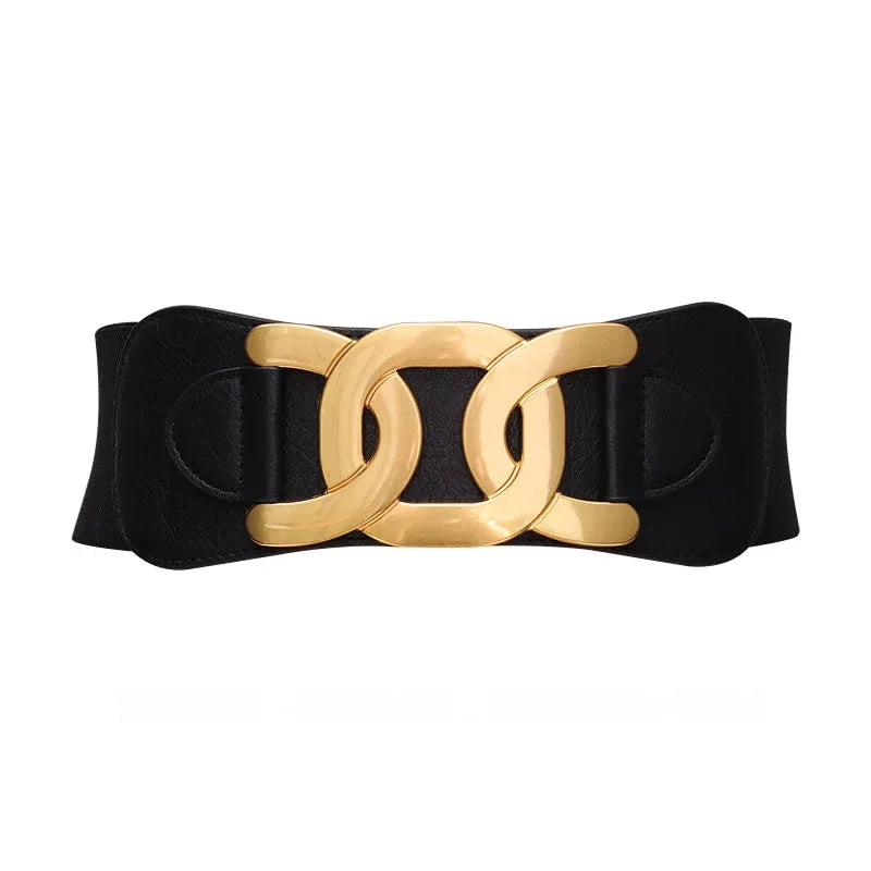 Sculpt a striking silhouette with this wide, elasticated waist belt. The bold gold buckle secures a comfortable yet statement fit, instantly upgrading any ensemble. Pair it with dresses, coats, or chunky knits for a luxe finishing touch.