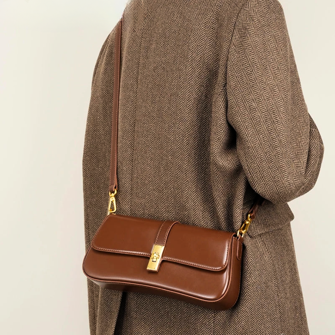 Polished gold-tone hardware adds a touch of understated luxury. The gleaming accents complement the rich leather and elevate the overall design, ensuring both beauty and functionality.