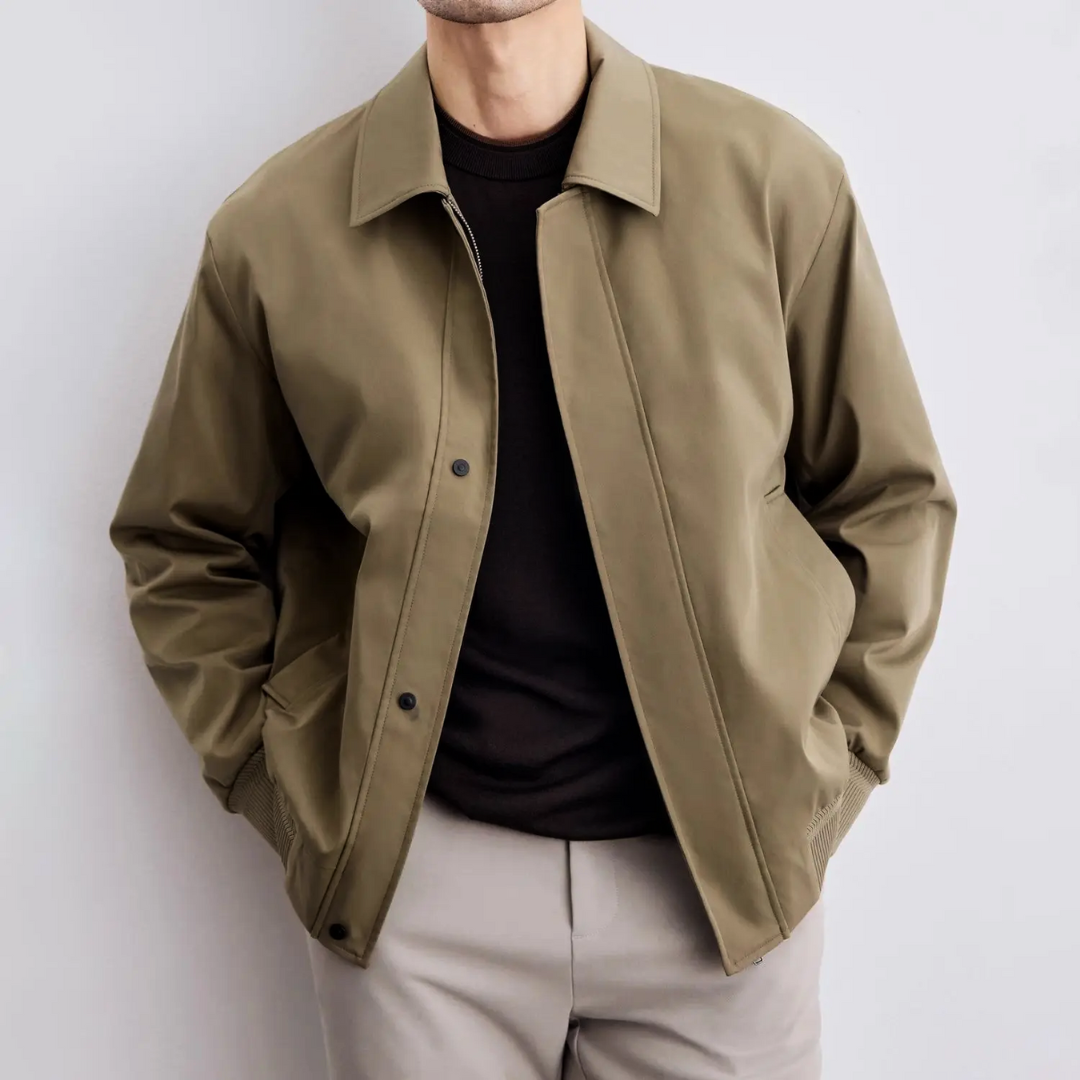 Its clean lines and understated details exude confidence, while the iconic bomber silhouette ensures you're always impeccably dressed. Whether you're navigating the urban landscape or embarking on a weekend adventure, this jacket effortlessly elevates your look.