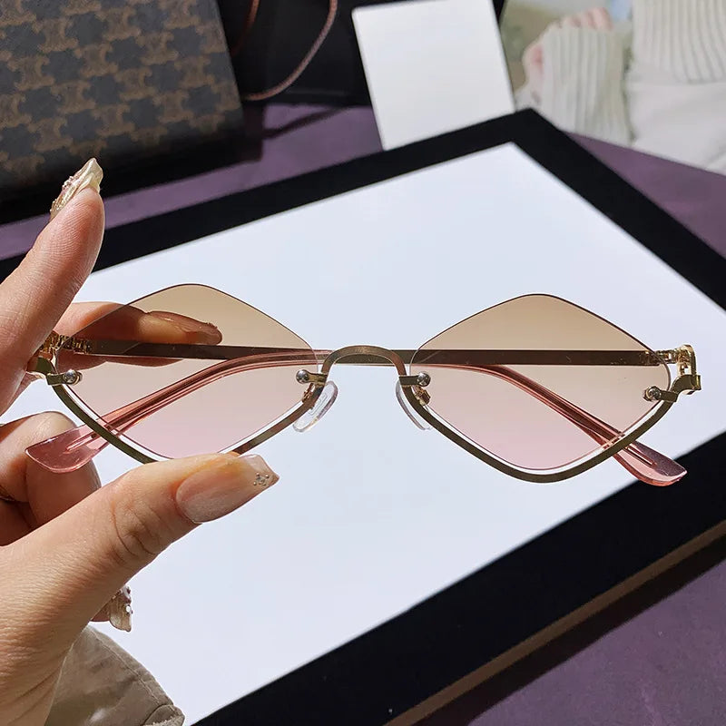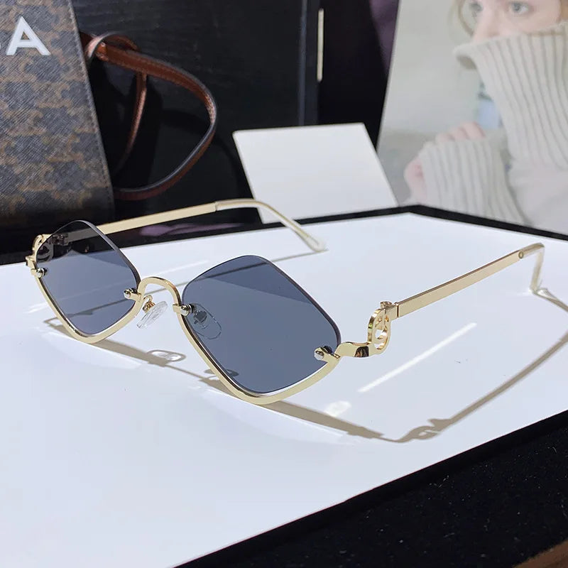 Diamond‑cut lenses float inside an ultra‑slim, gold‑tone half‑frame, creating a sculptural silhouette that feels almost weightless in wear. Optical‑grade lenses in jewel tints provide full UV400 protection while bathing the world in understated luxury.