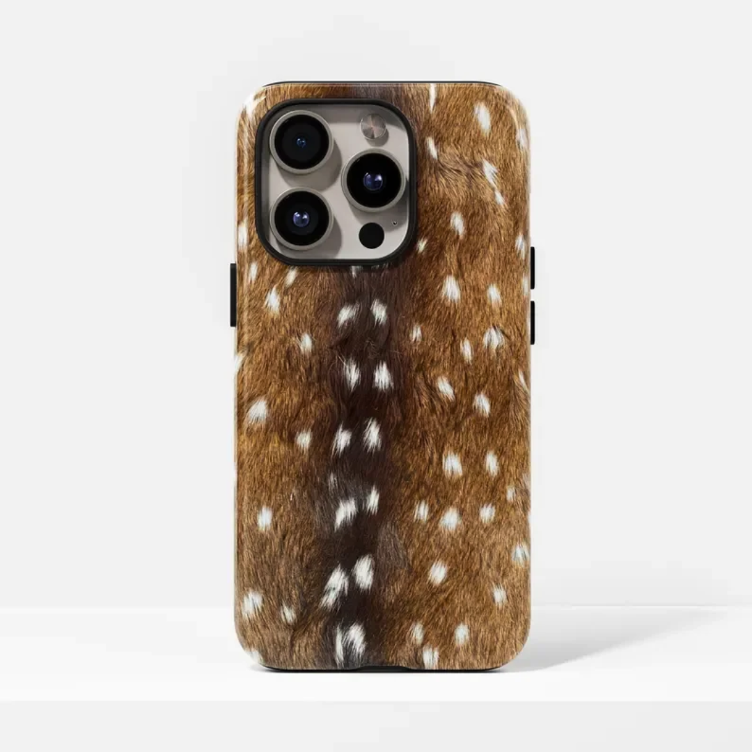 A textured case inspired by natural deer print tones, designed to stand out from flat graphic styles. The layered construction adds structure while maintaining a slim profile.