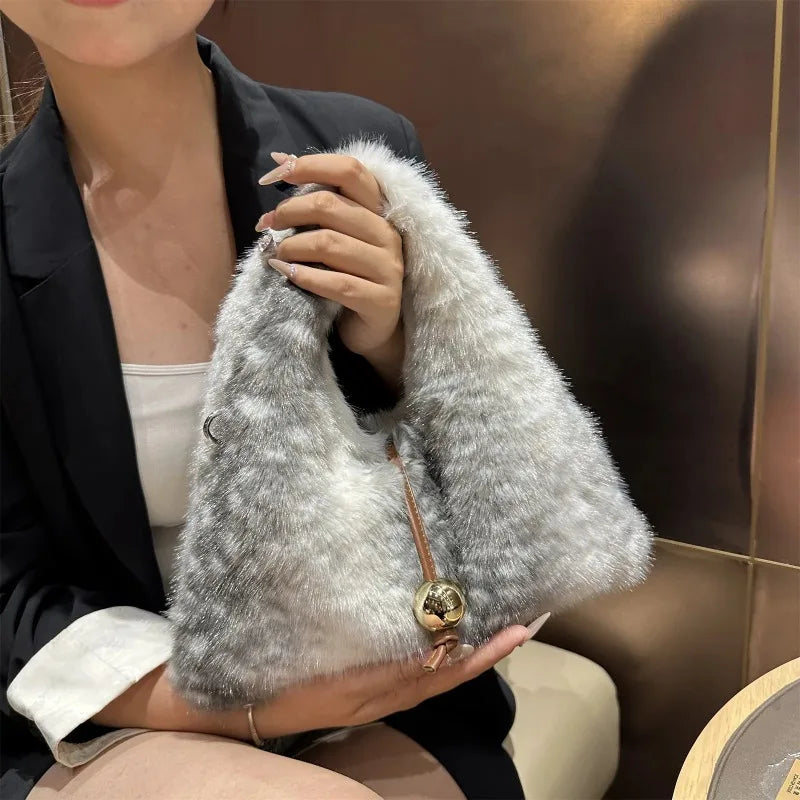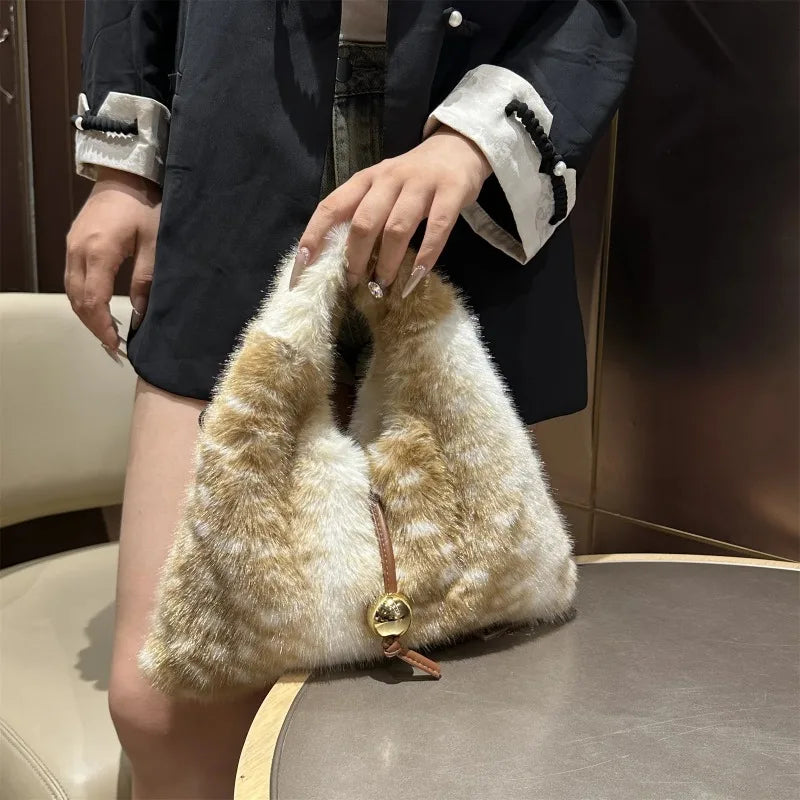 Wrap your carry in winter romance with the Fawn Muse Tote, rendered in ultra‑soft faux fur and a softly structured knot‑handle silhouette. The subtle deer‑spotted pattern and hidden magnetic closure keep every outing cozy yet editorial.