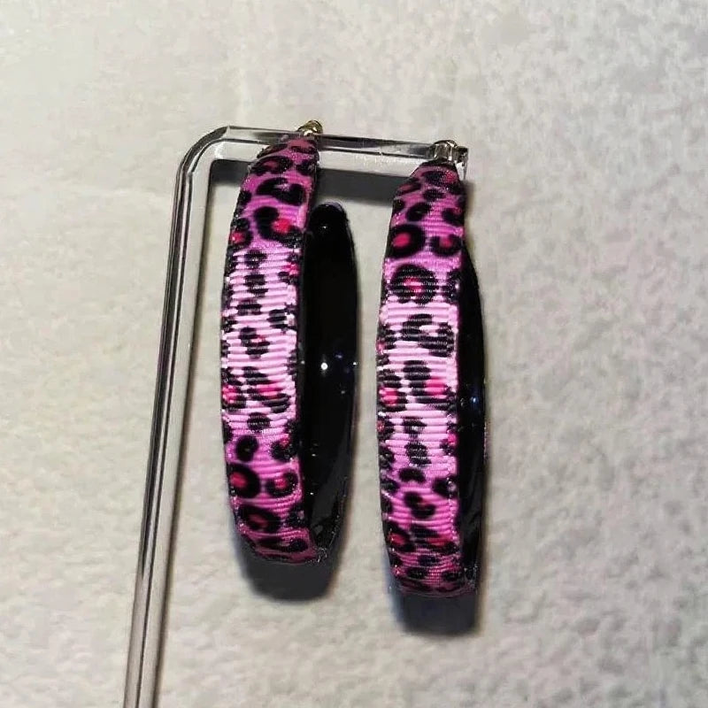 A glossy leopard‑print arc rides a slim black band, giving layered depth without the weight. Lacquered to a glassy shine, they frame the face with color and edge.