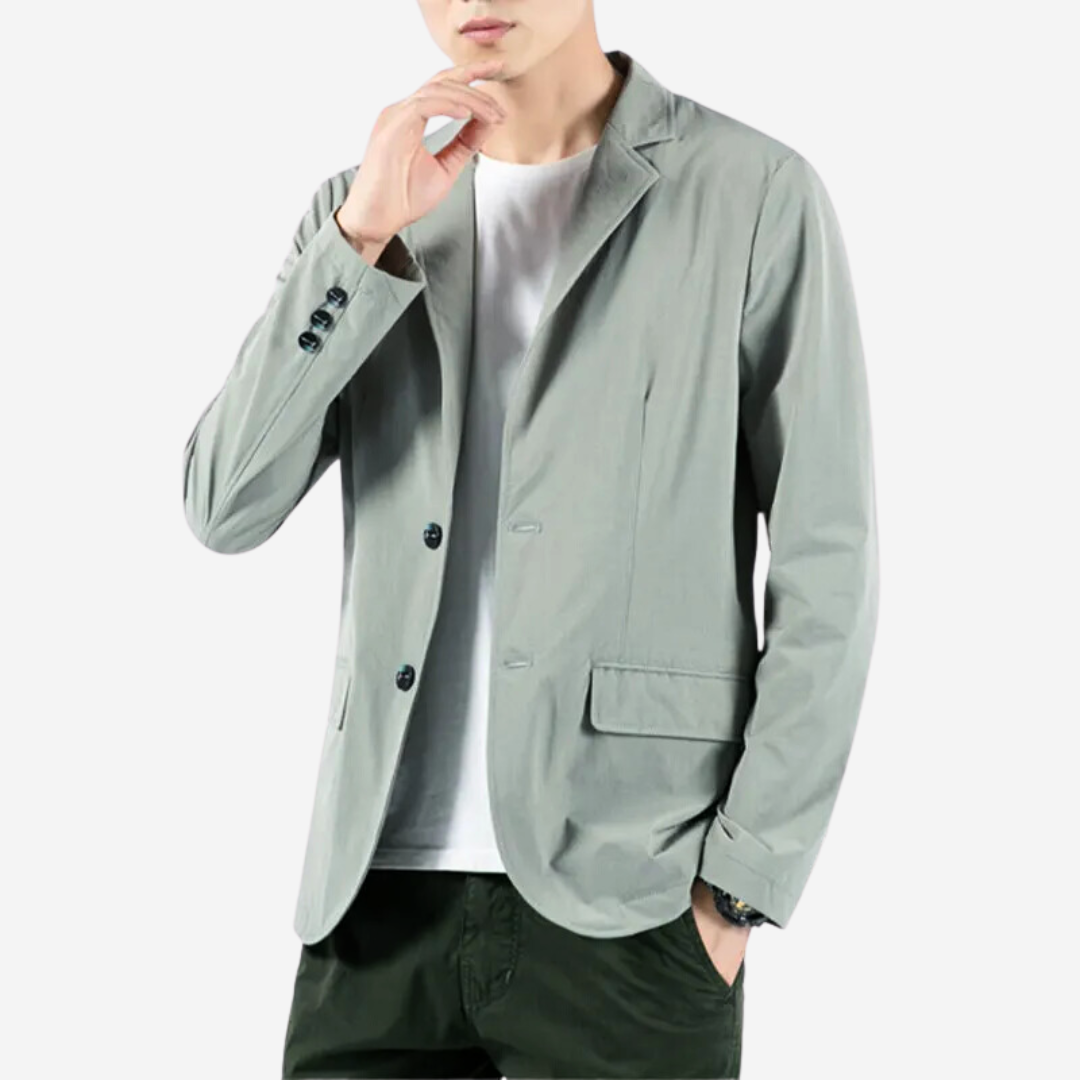 Meticulously crafted for the style-conscious gentleman, this single-breasted jacket seamlessly blends comfort with class. The lightweight, elastic fabric ensures freedom of movement while providing a sleek silhouette for the spring and summer seasons.