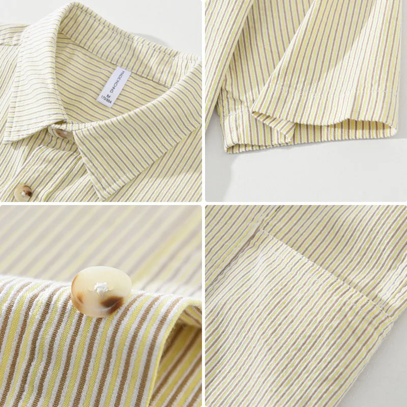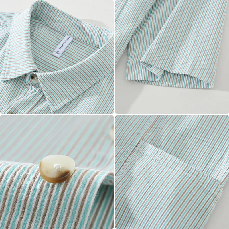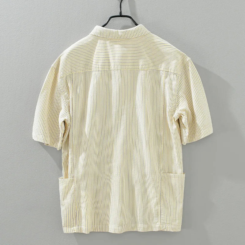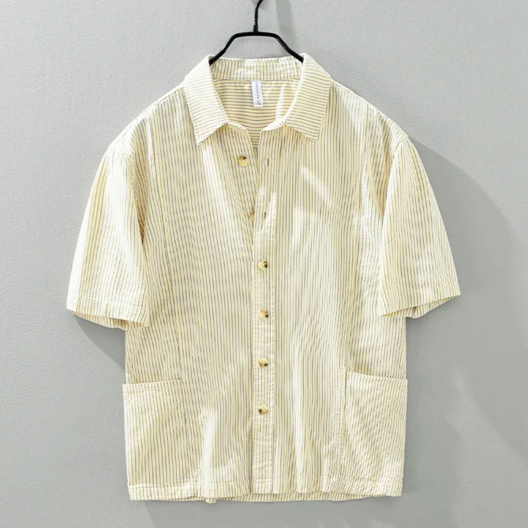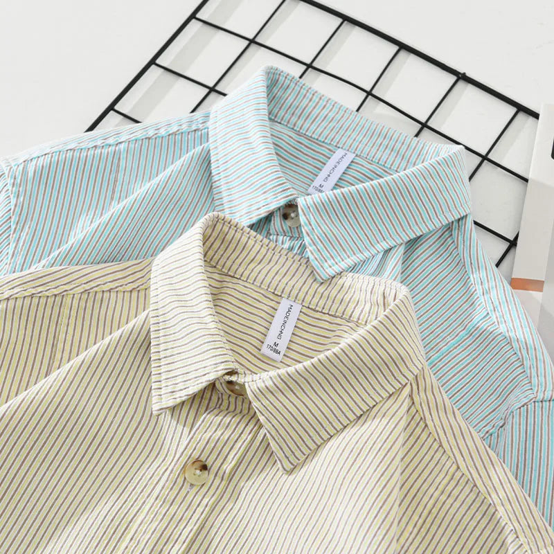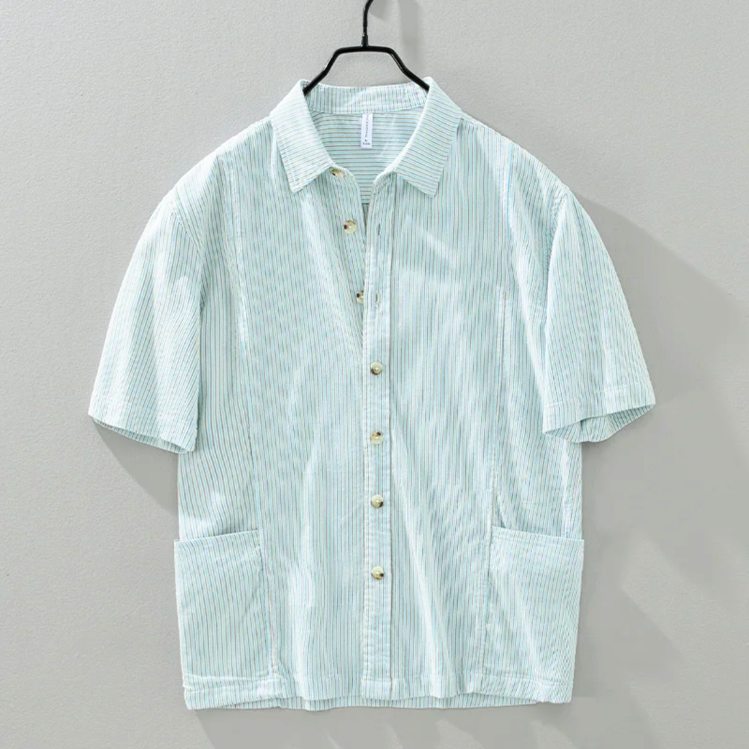 The iconic striped pattern, available in a versatile creamy white or a refreshing light blue, speaks to a legacy of refined taste. Its relaxed fit and pointed collar offer a laid-back yet polished aesthetic, ideal for warm days on the coast or leisurely evenings in the city.