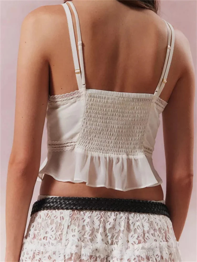 These delicate tanks whisper luxury with soft, flowing fabrics and intricate lace details that bloom along the neckline and straps.