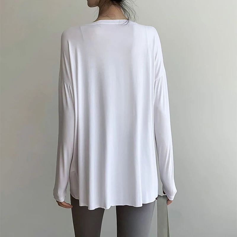 This stylish and functional top features a flattering U-neck, long sleeves, and a unique front split for unrestricted movement. Crafted from a breathable, moisture-wicking fabric, you'll stay cool and dry even during the most intense sessions.