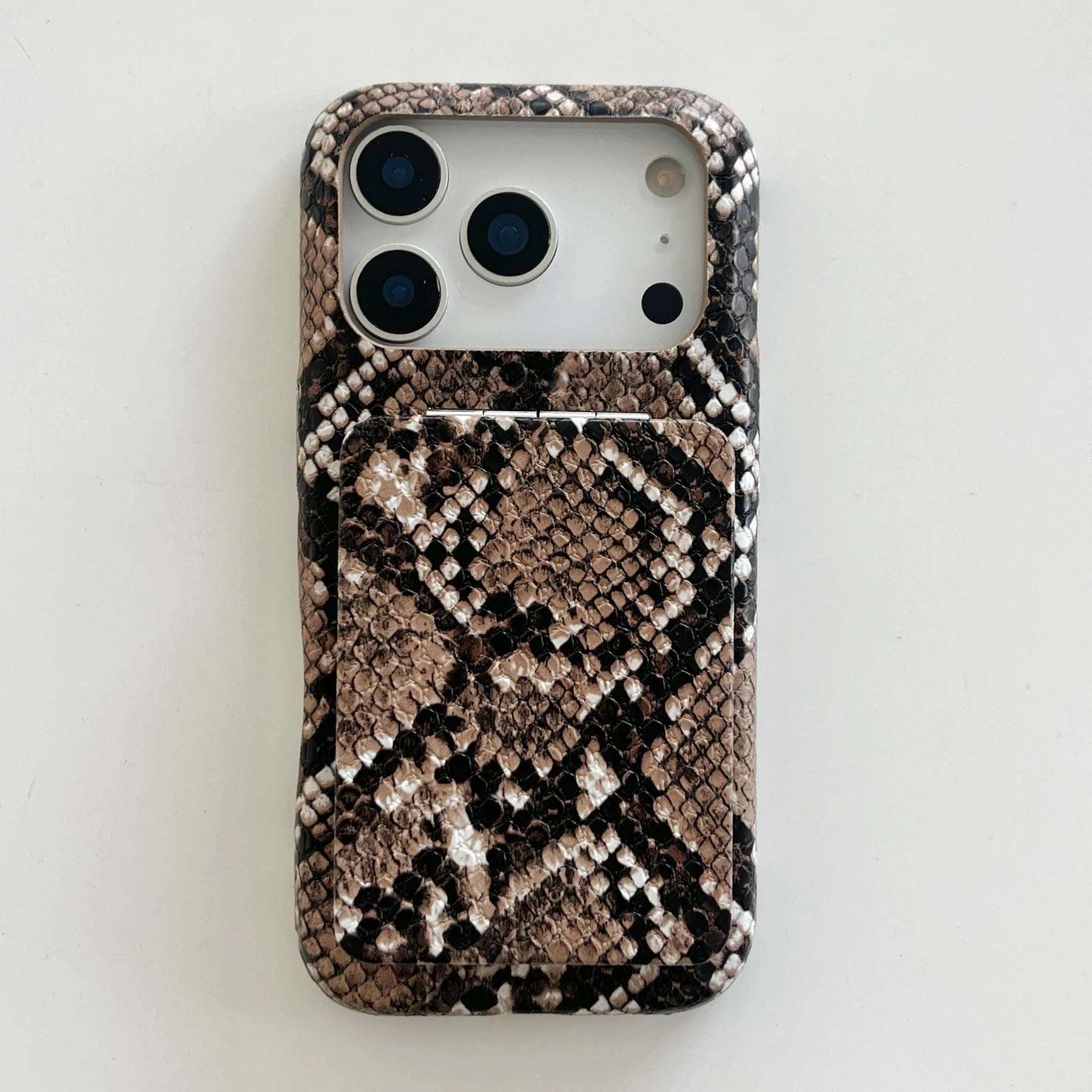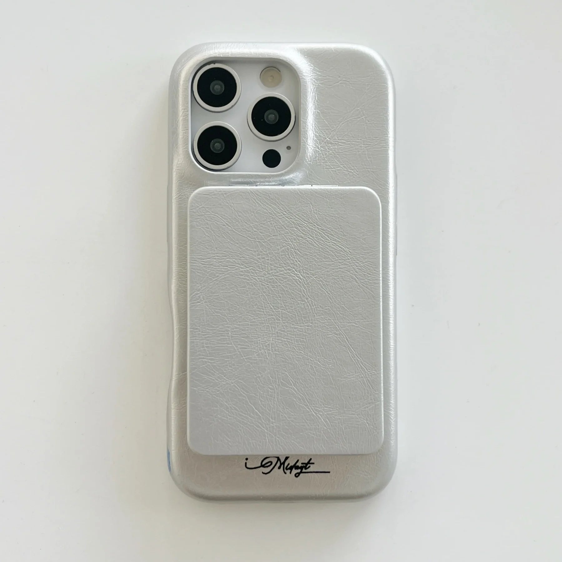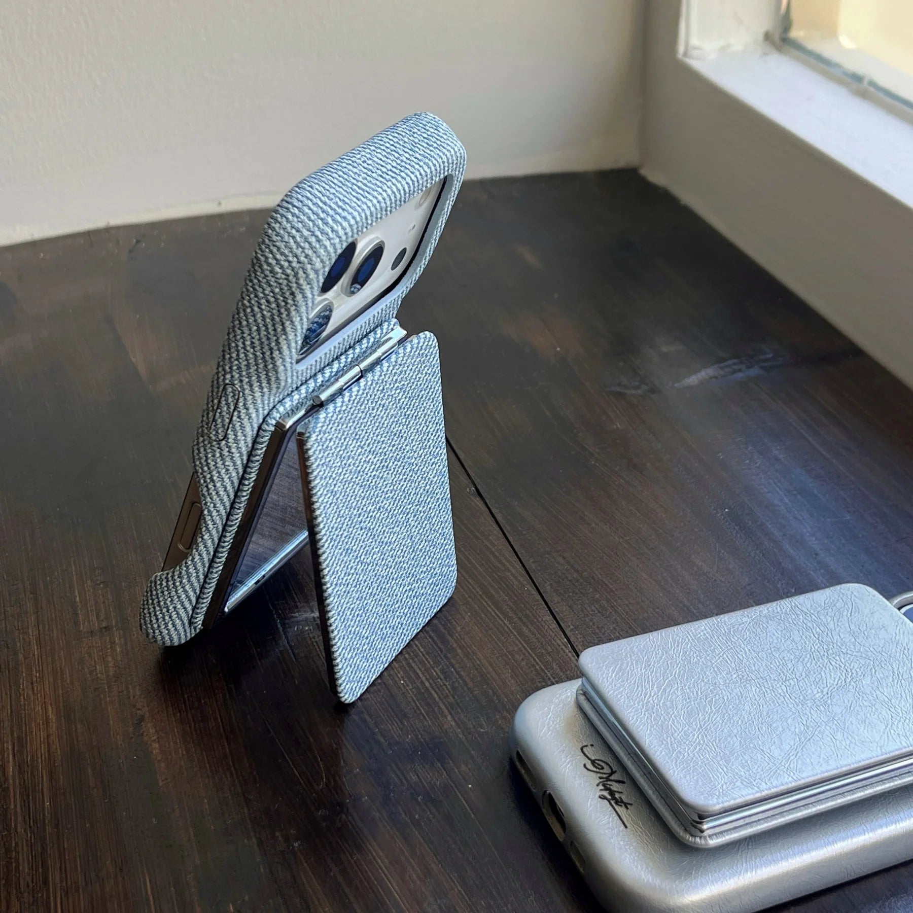A sleek leather-texture case with a built-in flip mirror that doubles as a stand. Minimal outside, functional inside — and reinforced for real protection.