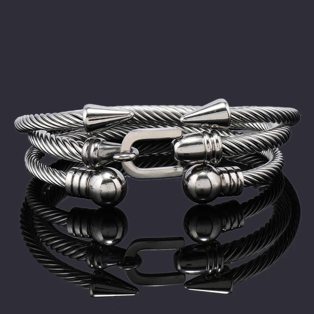 These bold accessories combine intricate cable wire designs with premium materials for a look that's both sophisticated and rugged. Crafted for the modern man who values understated power and lasting quality, these bracelets are perfect for layering or making a statement on their own.