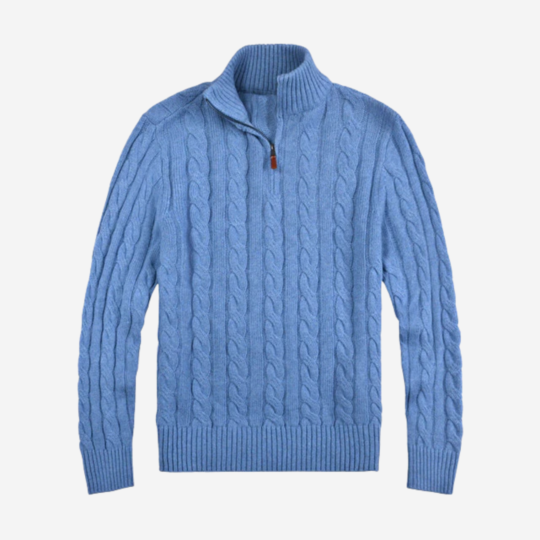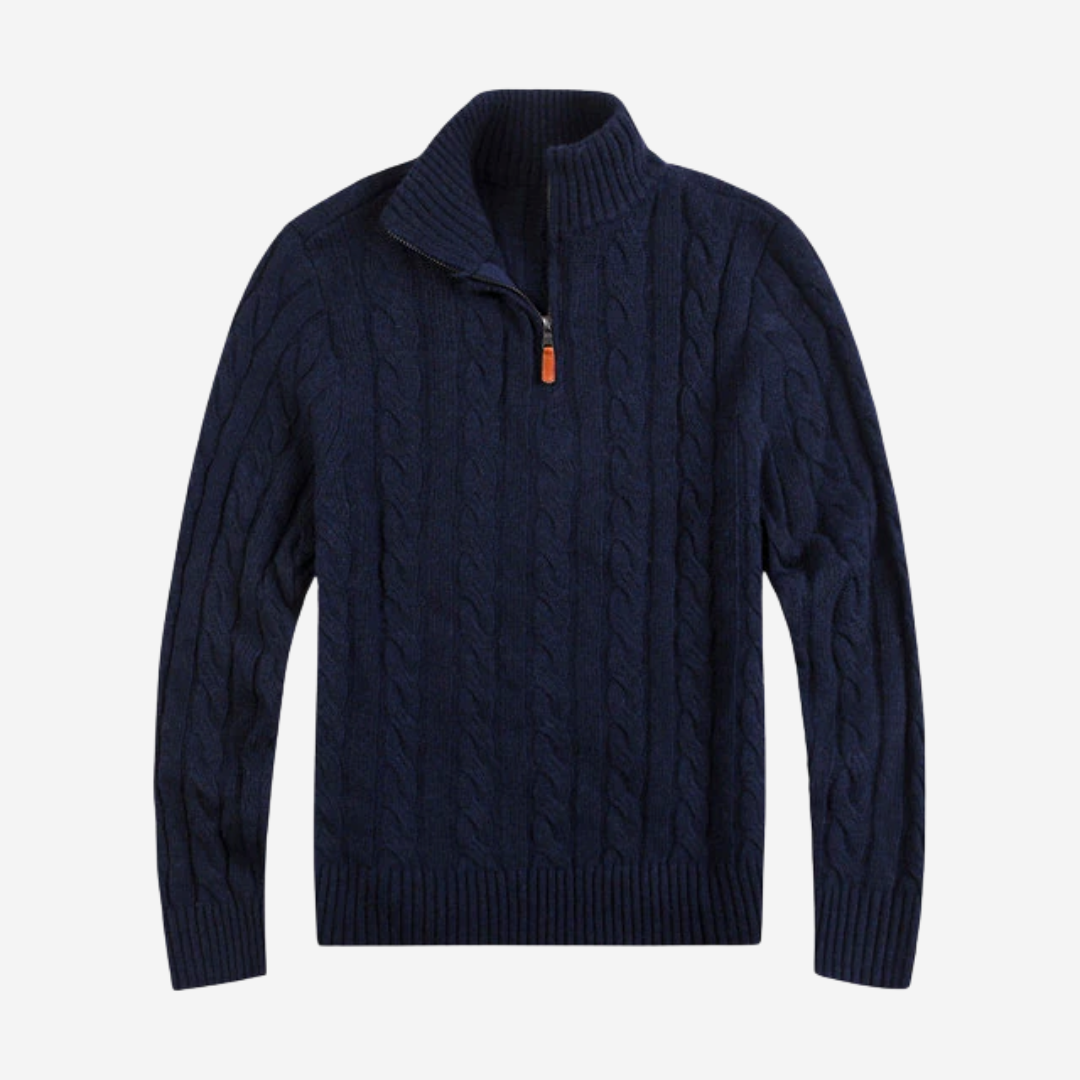 This Tom Adams Quarter Zip Pullover Sweater is a must-have for any man's wardrobe. Crafted from a luxurious blend of wool and cotton, this sweater is designed to keep you warm and comfortable all season long. Its quarter zip closure allows you to adjust the fit, while the ribbed cuffs and waistband provide a snug fit.