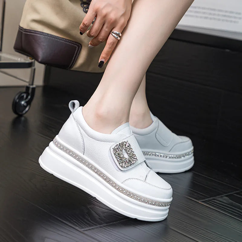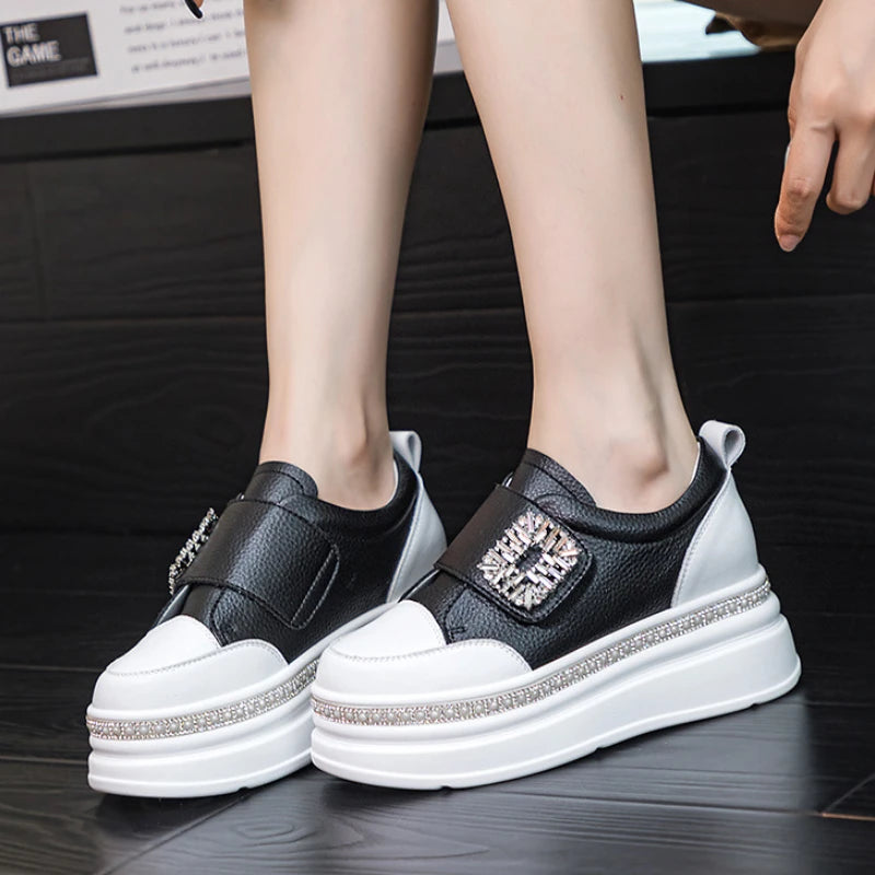 These aren't your average chunky sneakers - they're designed for the fashionista who demands both comfort and couture. Imagine the envious glances as light catches the luxurious sparkling gem, a dazzling centerpiece on the shoe.
