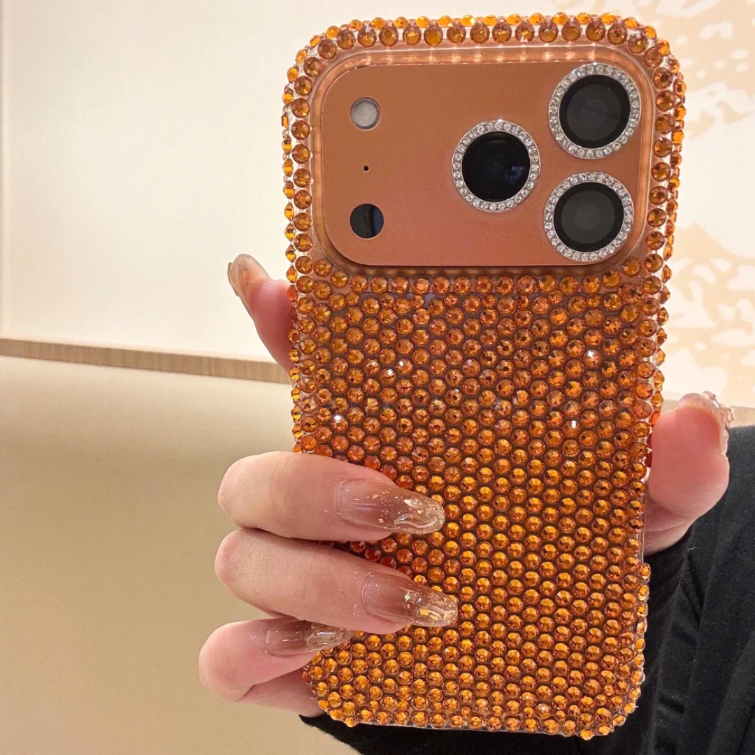 A fully rhinestone-covered case designed for maximum shine and sparkle. Decorative and eye-catching rather than subtle.