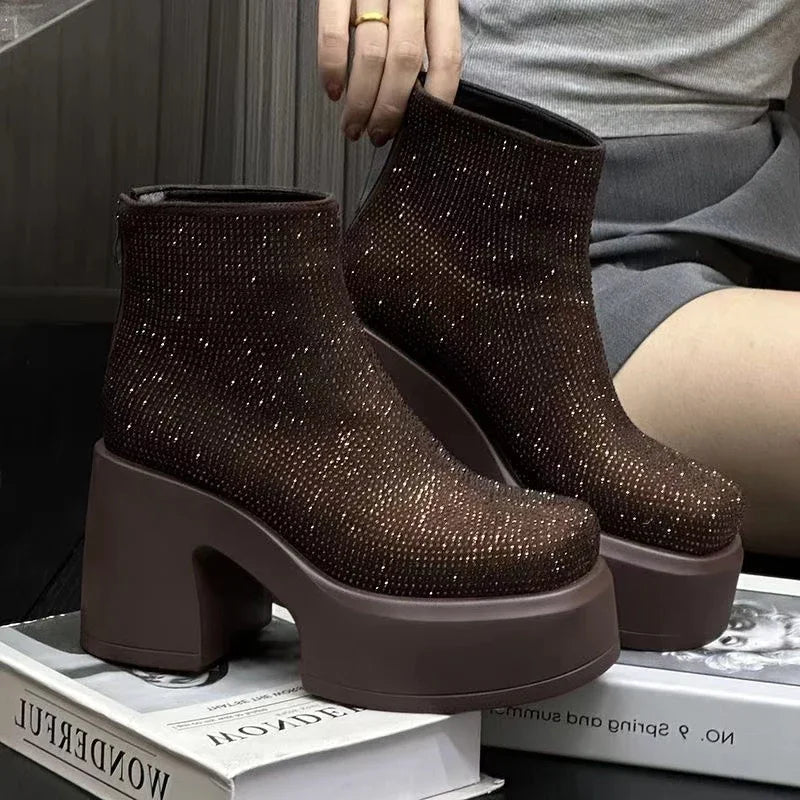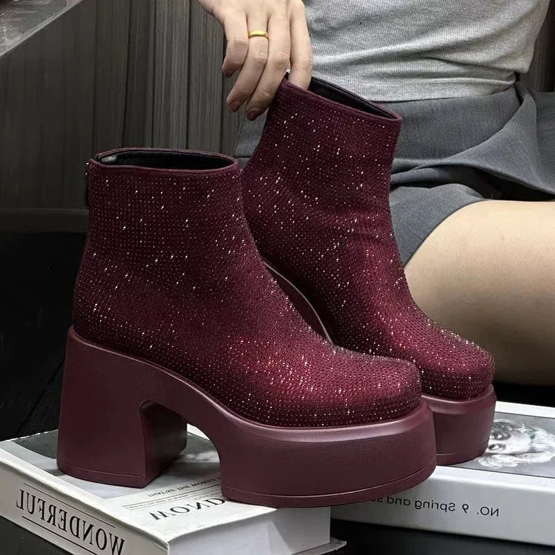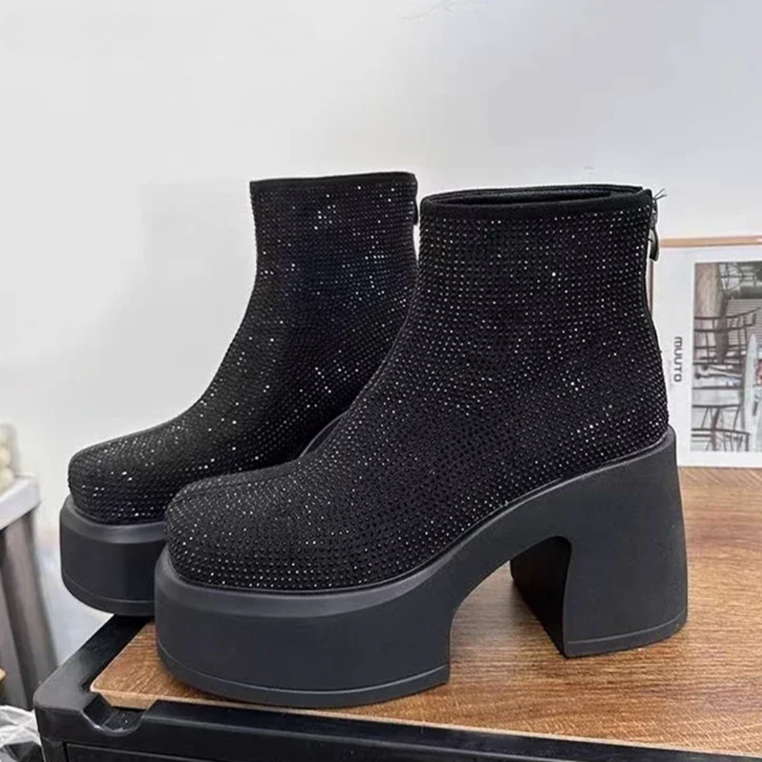 The Gala Glacier Glam Boots are a statement piece, a fusion of high-fashion and icy allure. With their sky-high platform heels, shimmering finishes, and a range of captivating colors, these boots are ready to turn heads and keep you warm all season long.