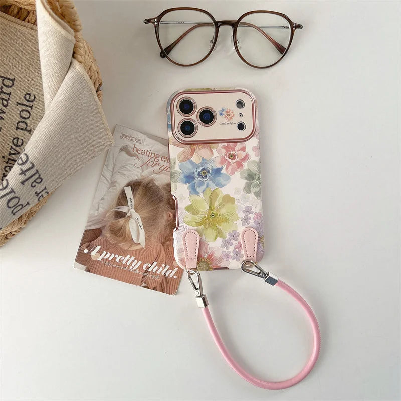 A retro floral print paired with a soft wrist strap so you never fumble your phone again. Light, romantic, and built with reinforced corners for everyday drops.