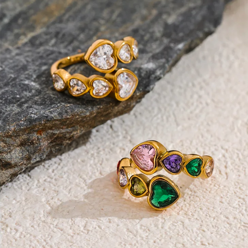 From heart-shaped clear stones that sparkle like distant stars to vivid sapphires, emeralds, and rubies that pop like supernovas, these rings are perfect for the trendsetter who's not afraid to shine.