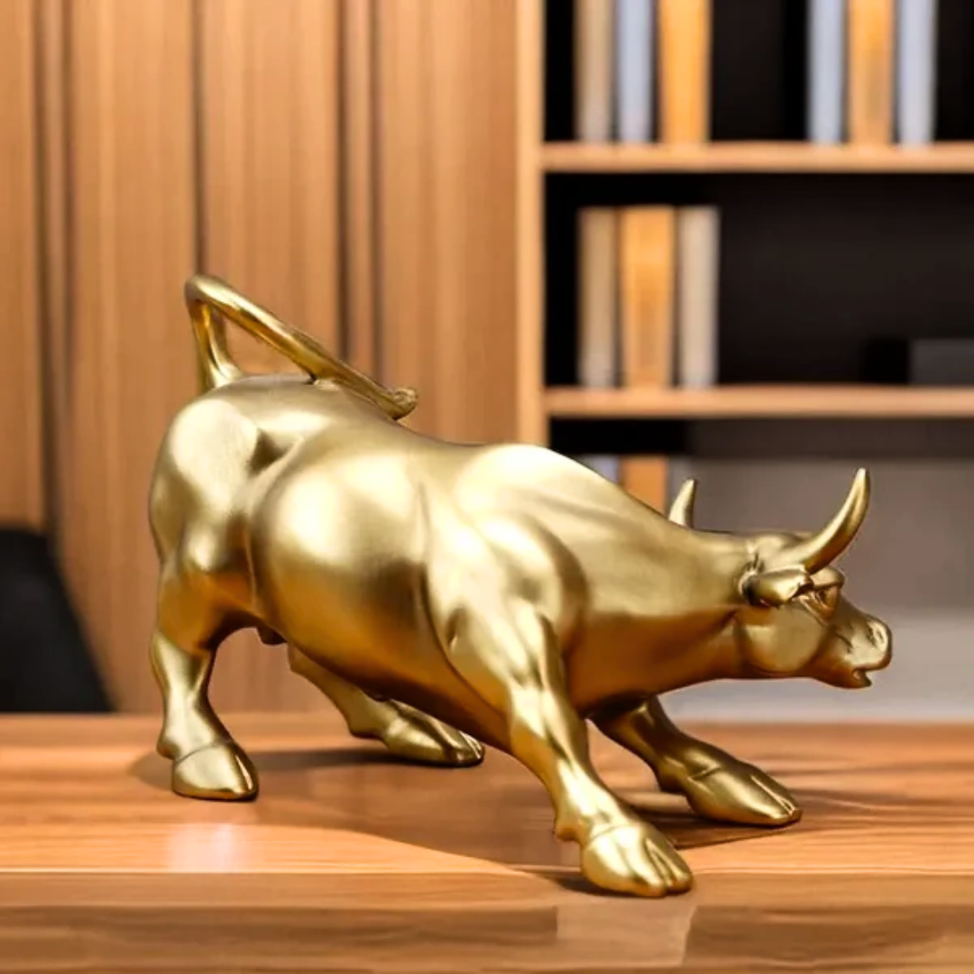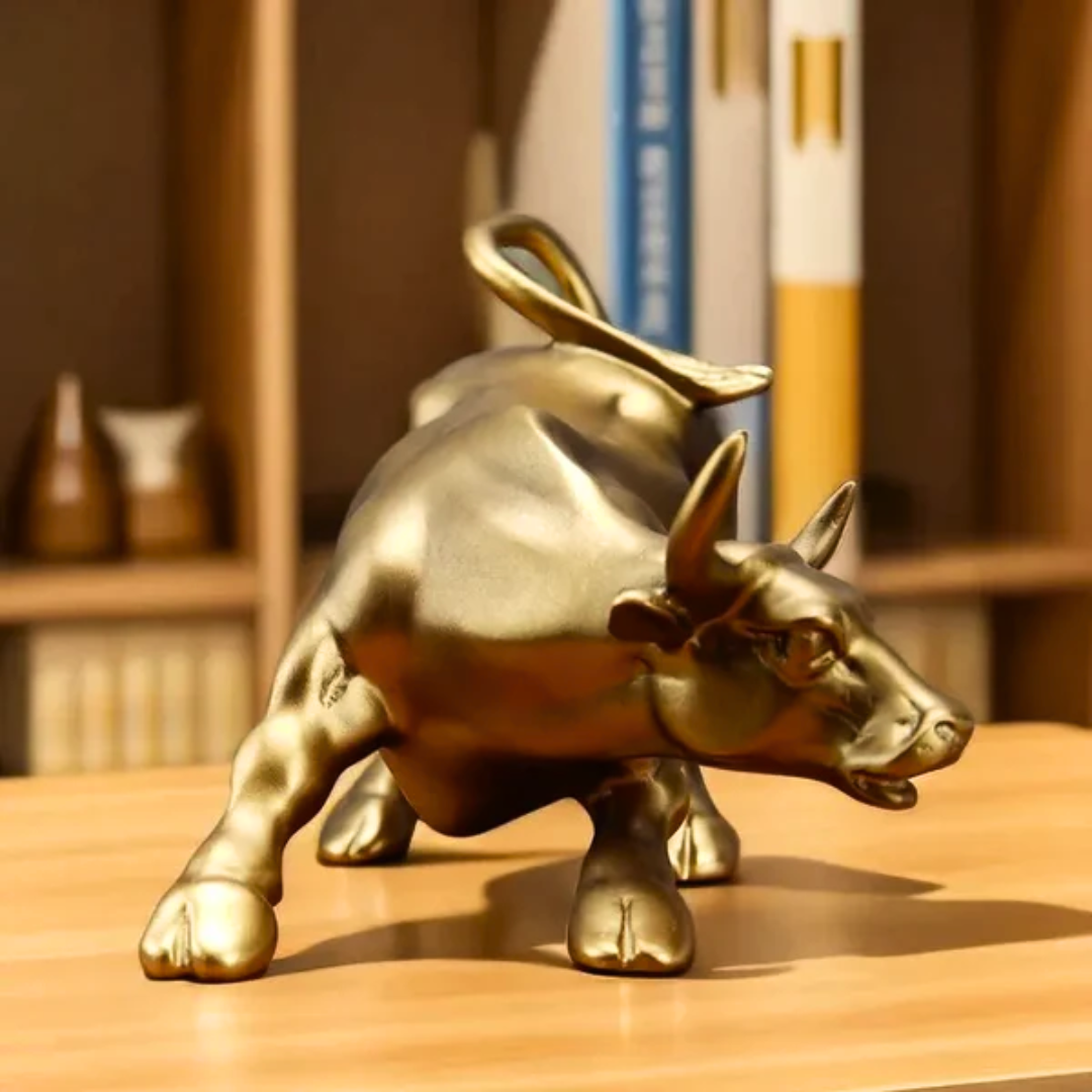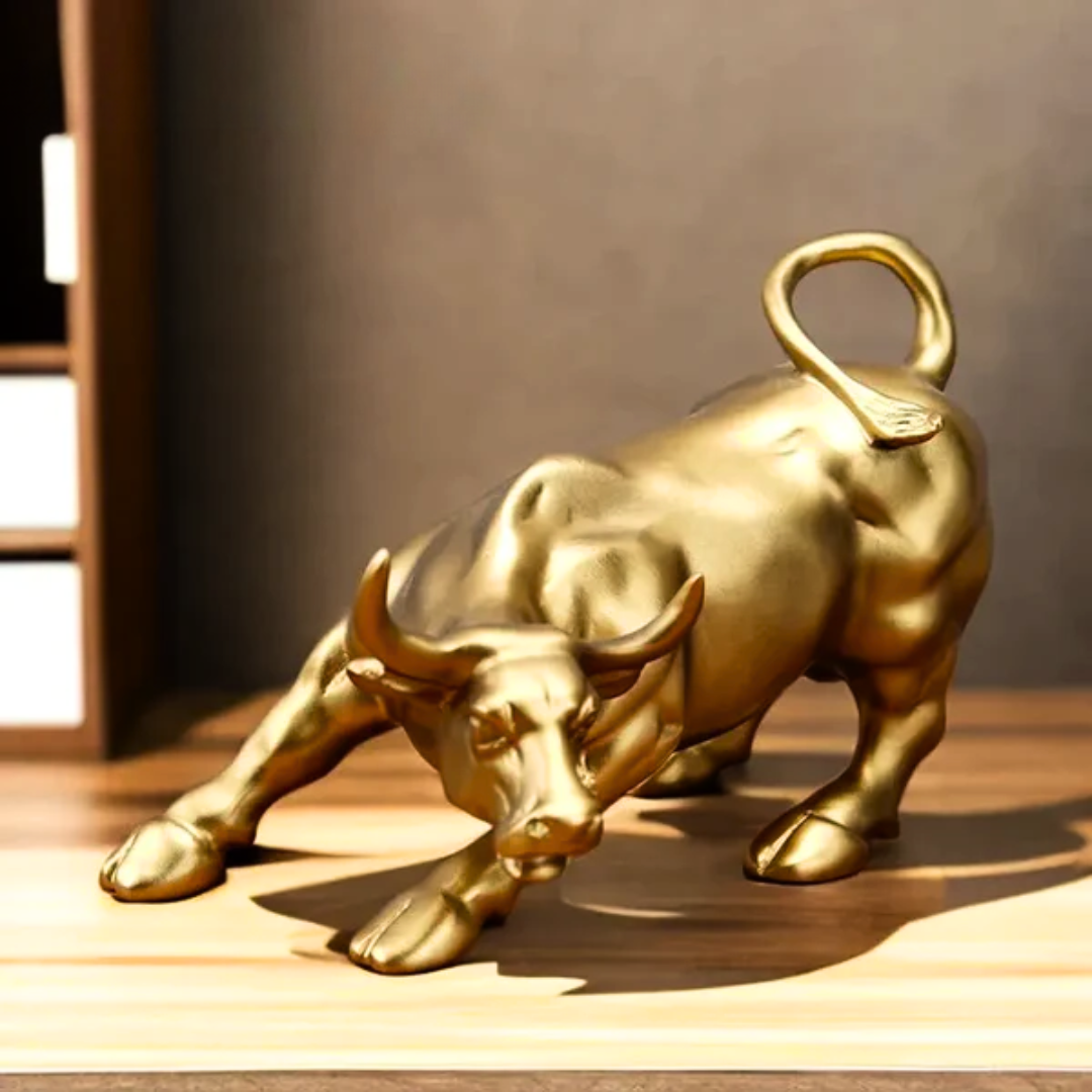 This isn't just a statue - it's a symbol of the raw power and momentum you're aiming to ride in this bull market. The gleaming golden bull, head down and charging forward, embodies the unwavering strength and bullish spirit needed to conquer the financial landscape.