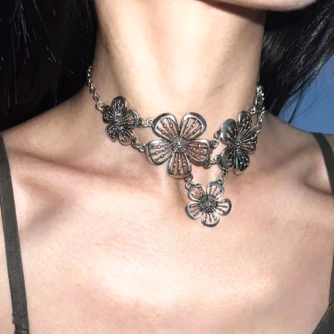 Handcrafted floral necklaces are a celebration of vintage-inspired beauty and bohemian spirit. Each piece is a wearable work of art, meticulously designed with intricate metallic flowers that dance and shimmer with every move you make.