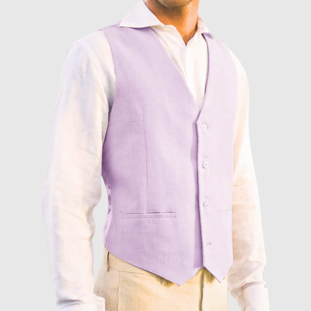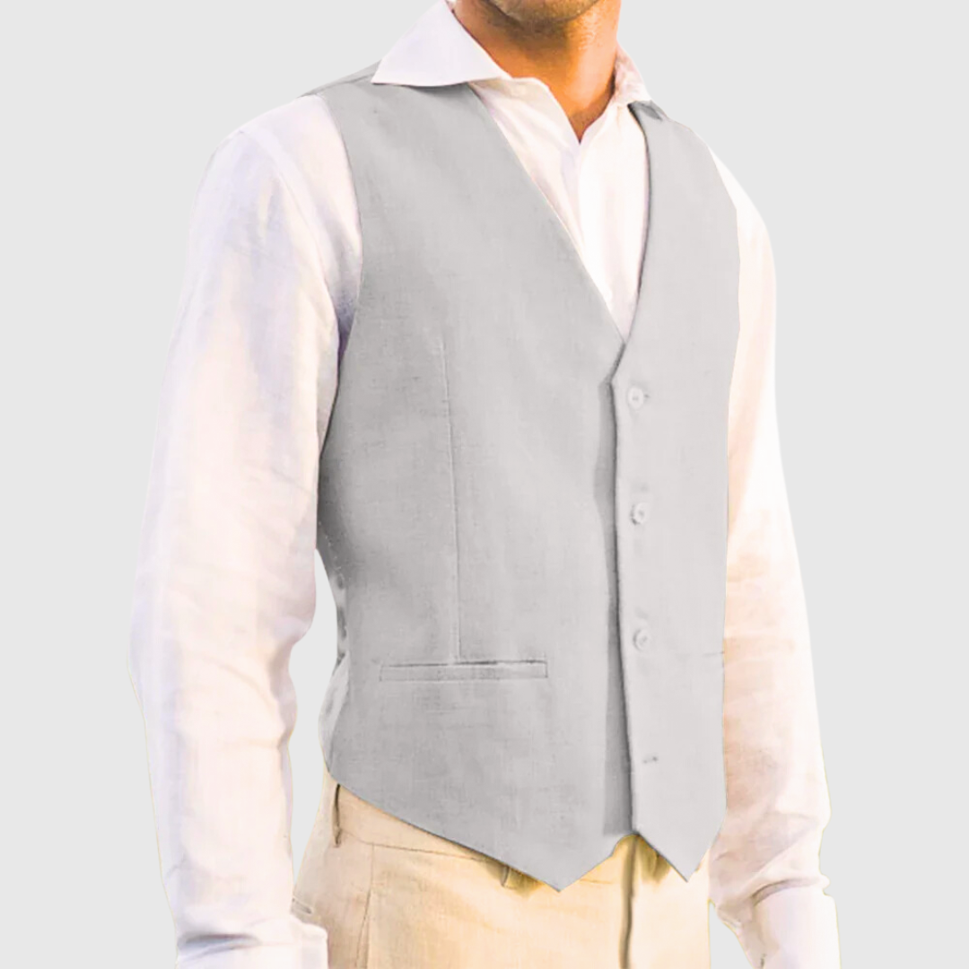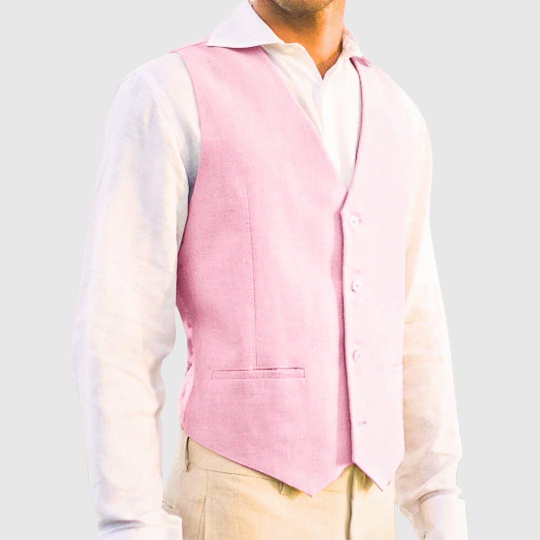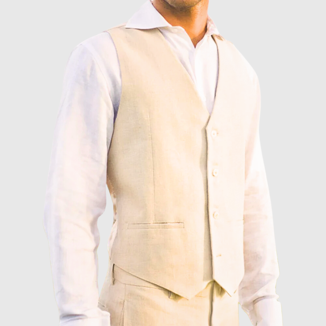 Crafted from pure, breathable linen, it drapes effortlessly, keeping you cool and composed even under the summer sun. Whether you're sipping cocktails on the veranda or exploring cobblestone streets, this vest exudes an air of casual elegance that's unmistakably Hampton.