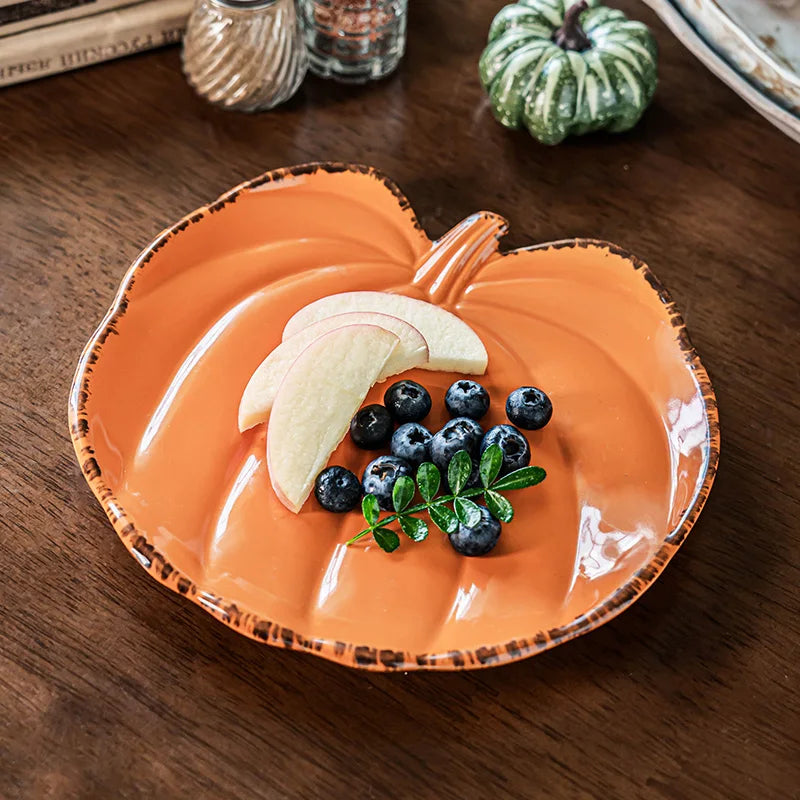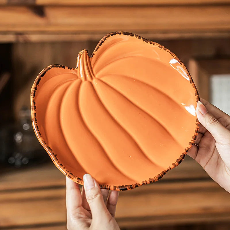 Bring the harvest to the table with a sculpted pumpkin silhouette, finished in a warm, high‑gloss glaze. Hand‑detailed edges and a gently irregular rim make every plate feel artisanal while the durable ceramic is made for daily use.