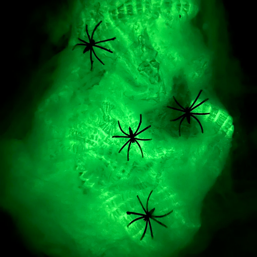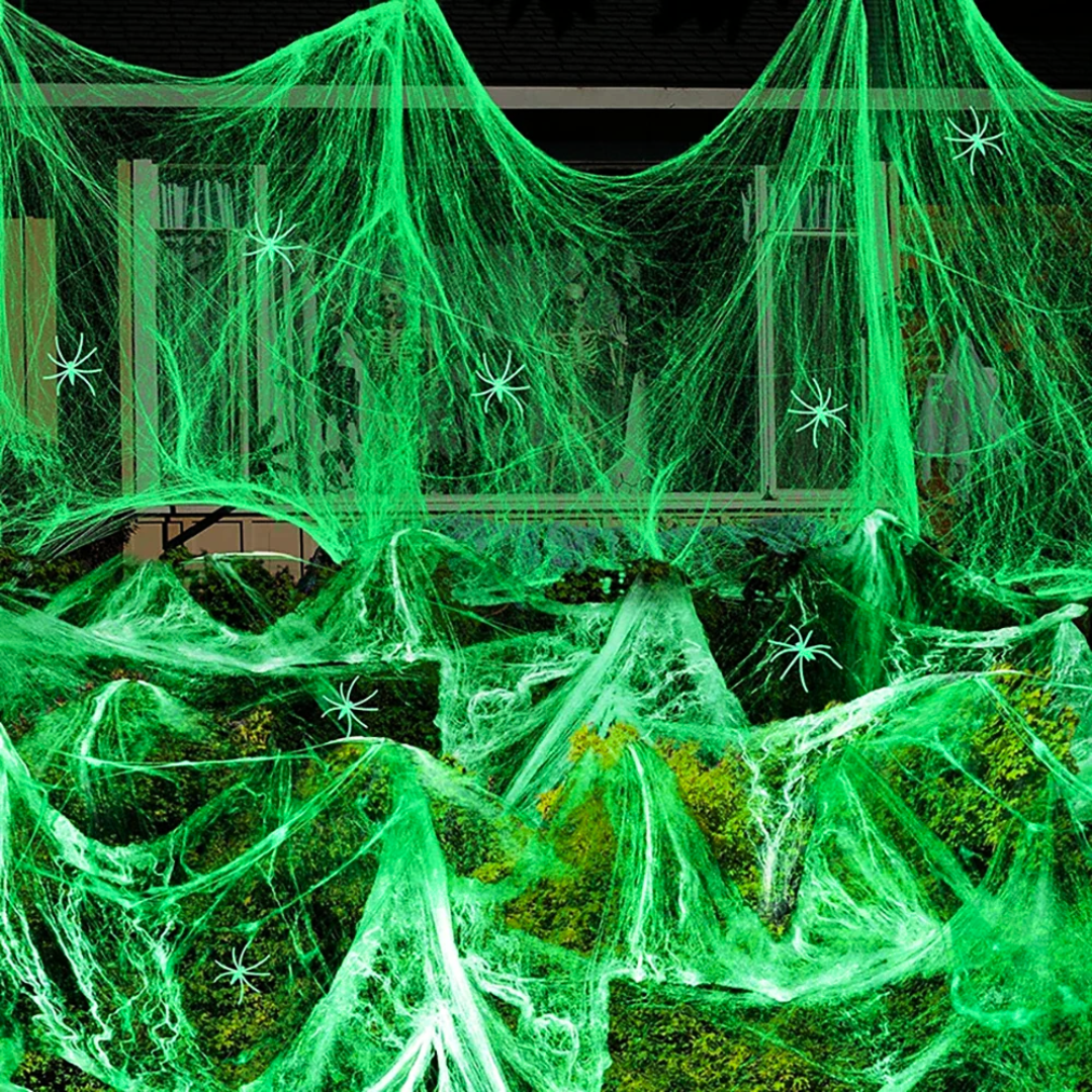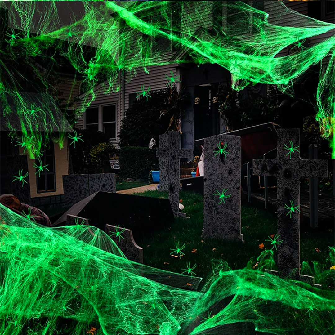Transform your home into a spine-chilling haunted house with our Haunted House Glow Webs! These eerie decorations feature luminous green spider webs that cast an unsettling glow, creating a spooky and atmospheric setting for Halloween.