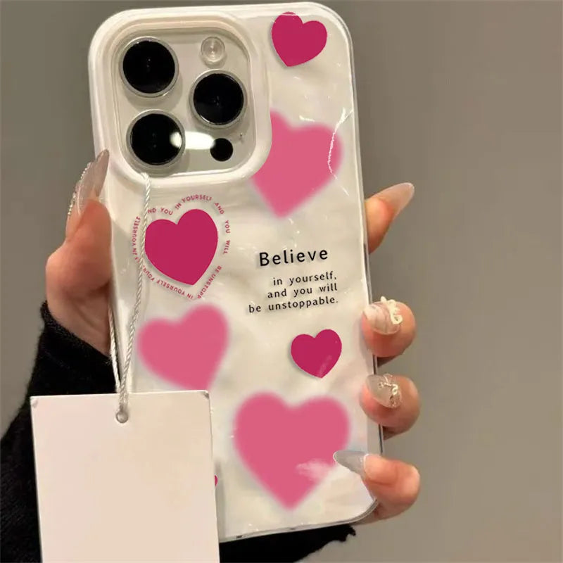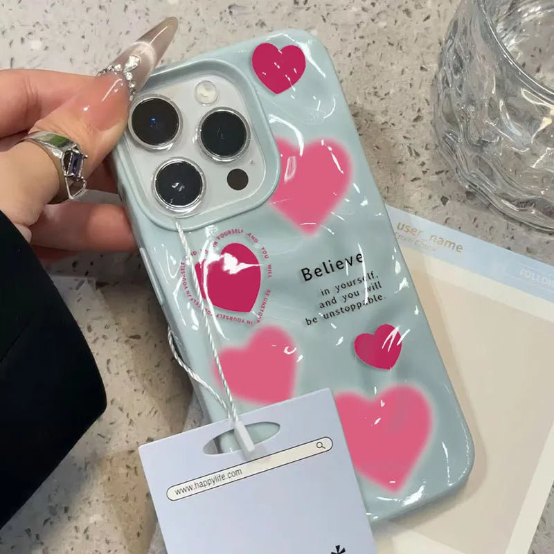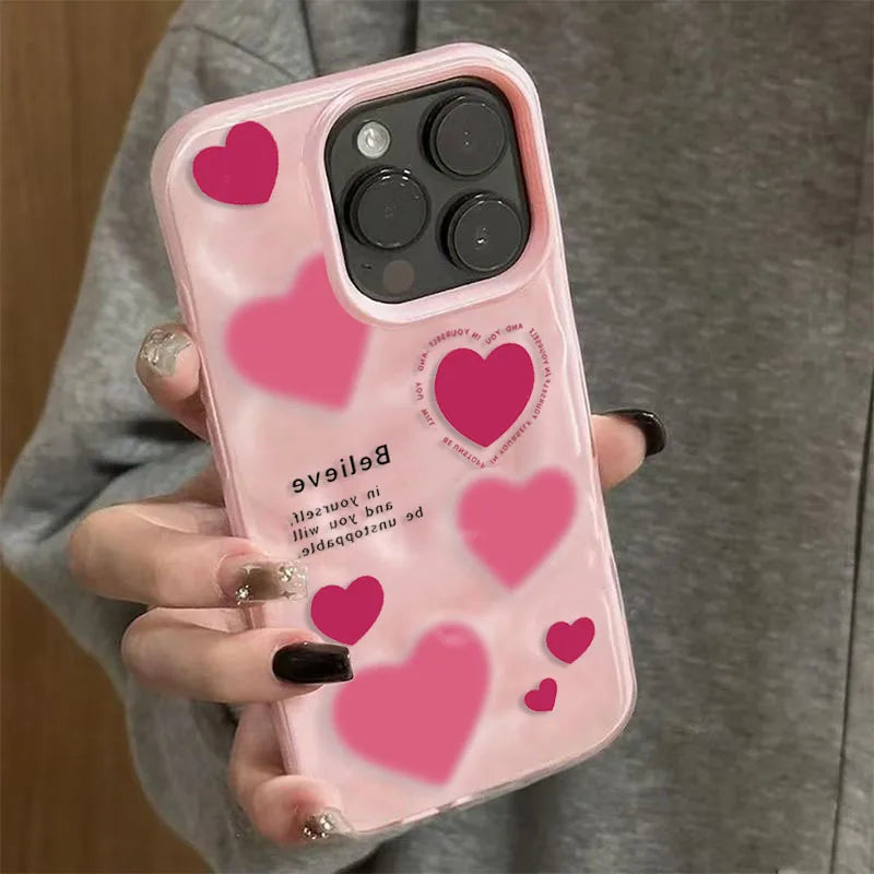 Turn every mirror selfie into a love note. HeartFold wraps your iPhone in a translucent jelly tint sprinkled with floating pink hearts, then finishes it with a wavy “folds” texture and a sculpted camera ring. Slim, squishy‑safe edges and air‑cushion corners keep it cute and shock ready.