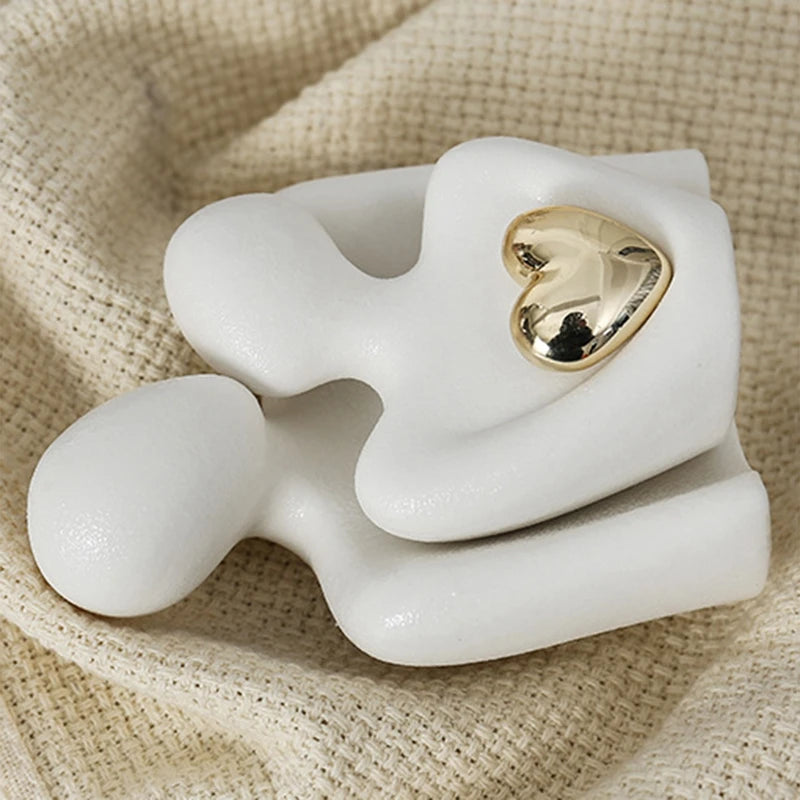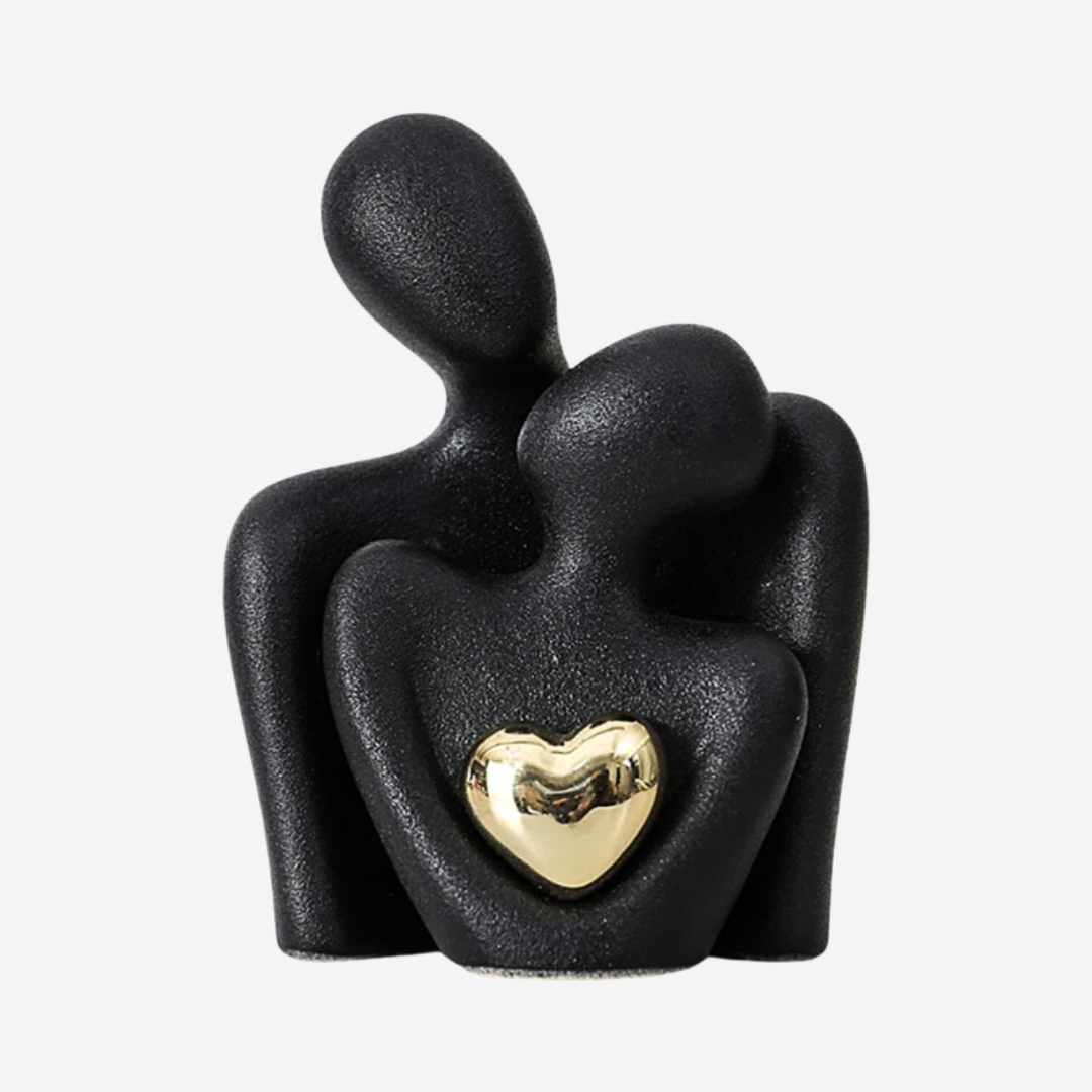 Celebrate love, friendship, and connection with The Heartfelt Connection Abstract Couple Sculpture. This modern minimalist piece features two figures intertwined in a tender embrace, their forms accentuated by a gleaming golden heart at their center.