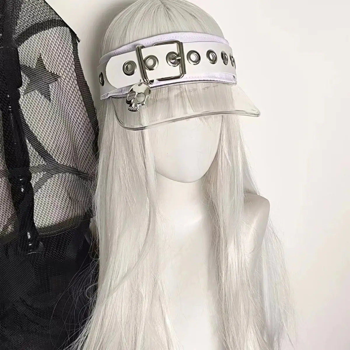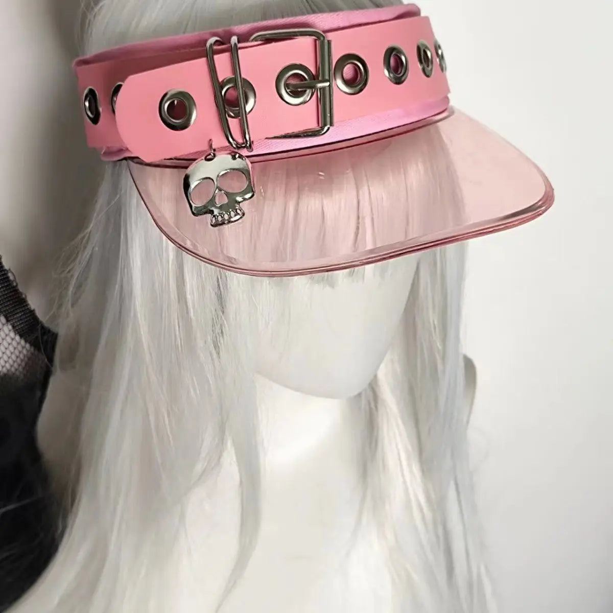 Turn every walk into a runway. IronHalo is a crownless street visor with a high‑shine finish, a belted band studded with grommet hardware, and a signature skull charm that snaps attention. The wide, sculpted brim throws clean shade while the open top keeps you cool—perfect for festivals, night rides, and Y2K‑coded fits. Adjustable, feather‑light, and unapologetically bold.