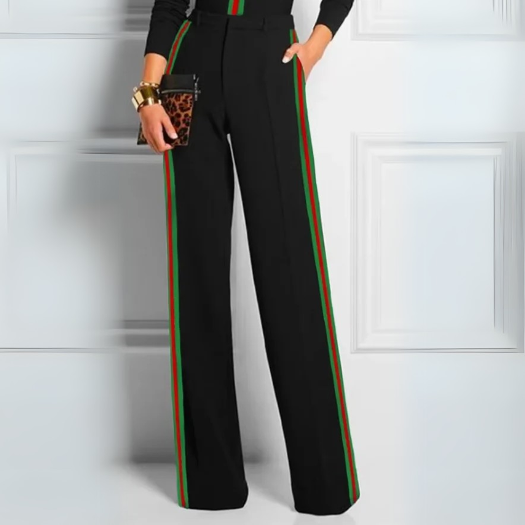 This two-piece ensemble features a high-neck top and straight-leg trousers, creating a flattering and versatile silhouette with a touch of sporty sophistication, thanks to the bold side stripes. Crafted from a soft and stretchy fabric blend, this set offers all-day comfort and endless styling options, as the pieces can be worn together or separately.