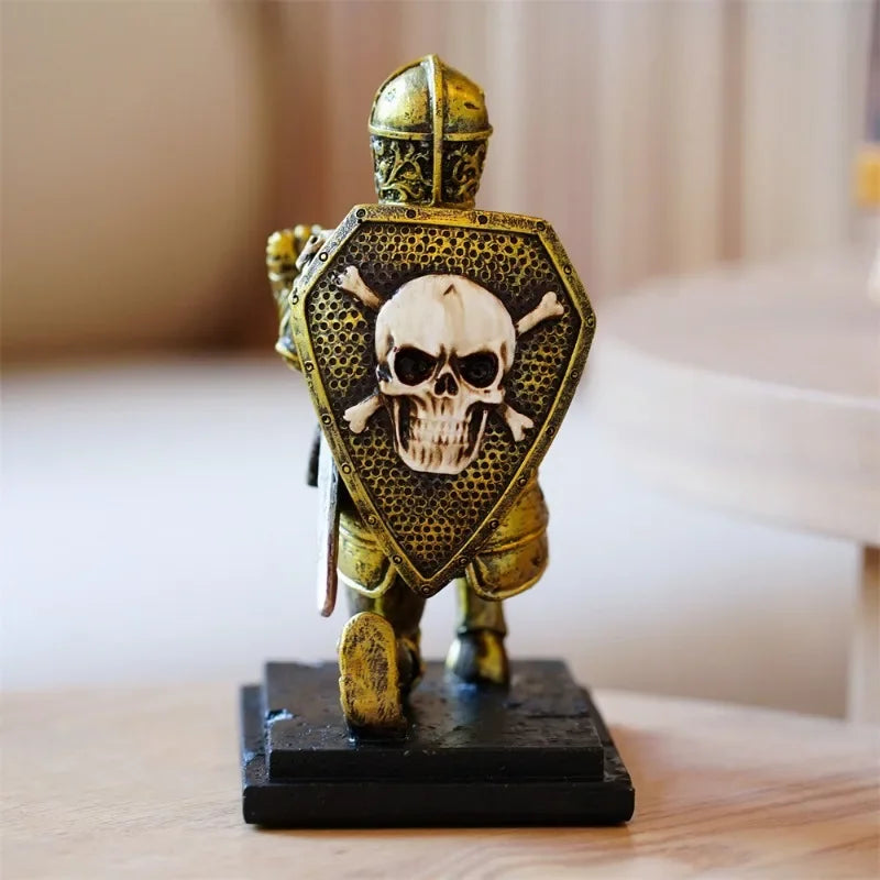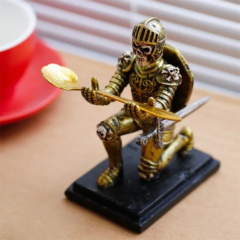 This unique pen holder features a kneeling knight in armor, holding a pen as if it were a weapon. The skull-like face adds a touch of gothic intrigue, making it a perfect conversation starter.