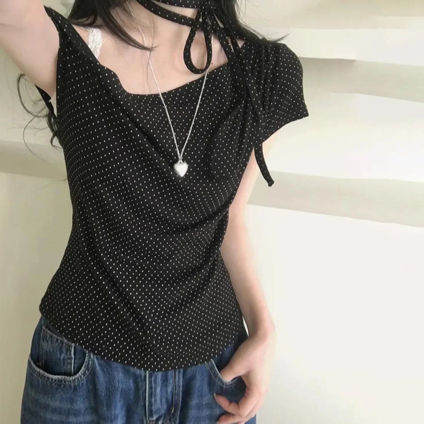 A built‑in lariat tie wraps as a choker or bow while the cowl drapes cleanly across a single exposed shoulder. The waist‑skimming silhouette hits at the hip for an easy tuck and a polished line.