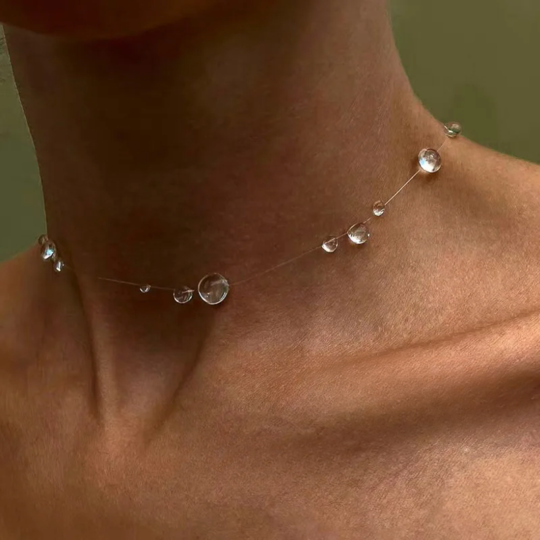 Luminous teardrop crystals catch the light like fresh morning dew, draping effortlessly along a gossamer chain. Radiant yet refined, this piece transitions seamlessly from minimalist layering to an ethereal focal point, conjuring praise wherever you wander.