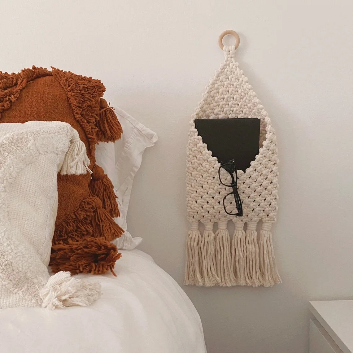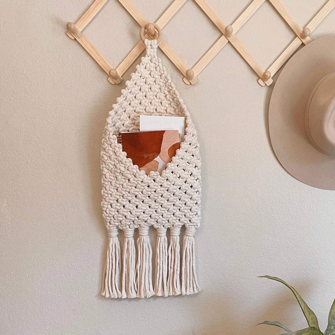 With each loop and knot tied by hand, this macramé wall pocket brings a personal touch and warmth to your walls. It’s not just about storing items; it’s about creating a space that feels orderly and inviting. Hang it in your entryway for mail, in the living room for magazines, or even in the kitchen for herbs—its natural elegance and subtle charm will enhance any corner of your home.