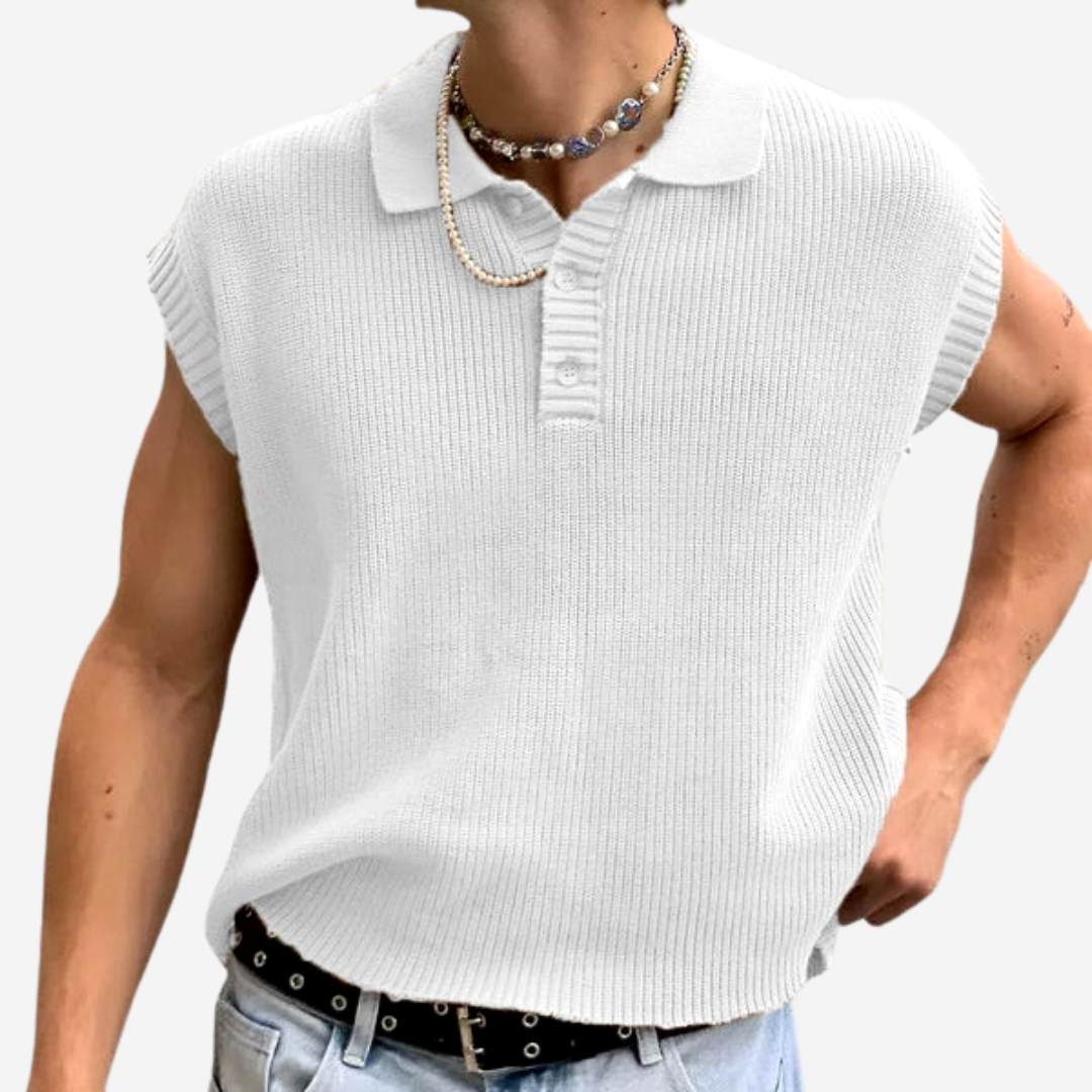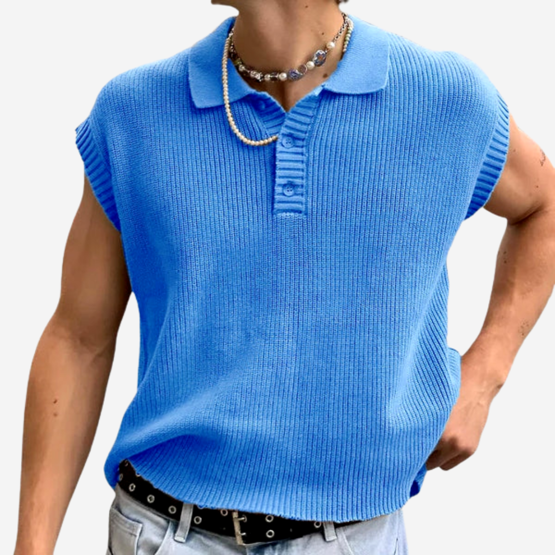Introducing the Tom Carter Knitted Top: a stylish and versatile addition to any modern man's wardrobe. This premium men's sleeveless knitted top is the perfect blend of comfort and sophistication, perfect for casual outings or dressing up for a night out on the town.