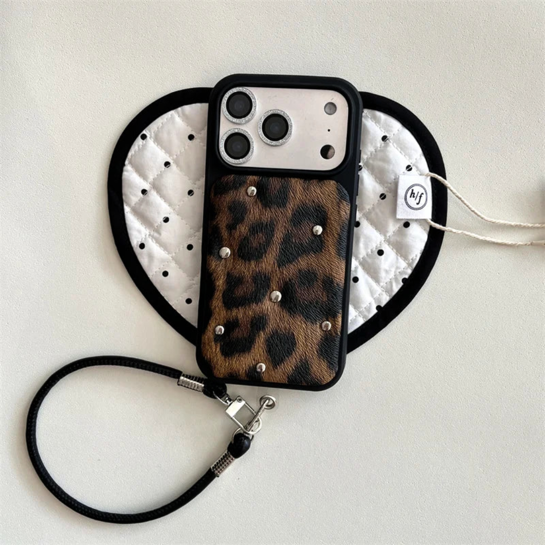 Leopard-Rivet dresses your phone in a soft faux-fur print studded with metal bead accents, giving it a tactile, street-luxe feel that stands out in mirror shots. A detachable wrist rope adds hands-free ease while the shock-safe frame keeps everything protected as you move through the day.