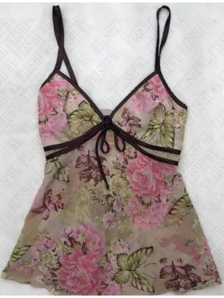 Faded blooms meet bold straps in a nod to ’90s grunge. Throw it on with denim or a mini skirt for effortless Y2K flair that racks up likes.