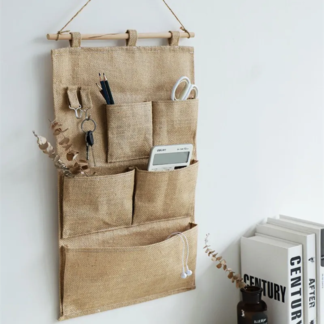 Crafted from eco-friendly linen and finished with a natural jute hue, it's both stunningly stylish and sustainably sourced. With 5 or 7 roomy pockets, you'll have a designated spot for everything - from kitchen utensils to office supplies to baby essentials.