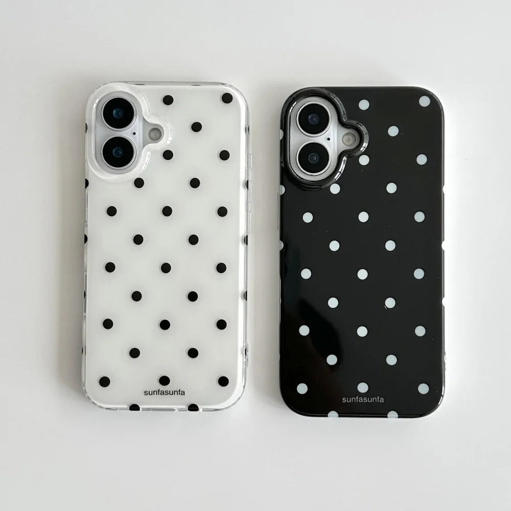 - Flexible TPU shell; black/white polka‑dot print (two colorways)