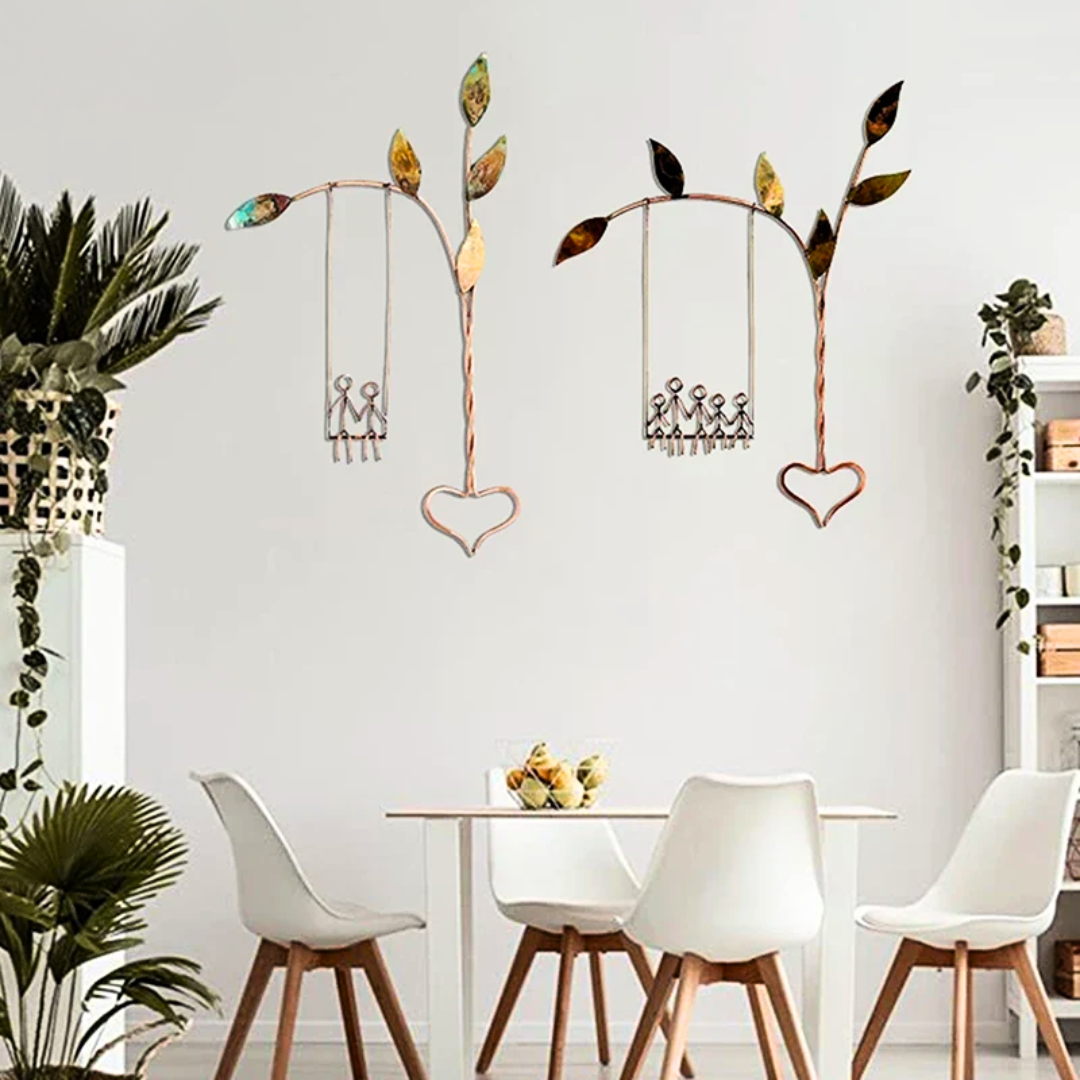These delicate copper branches, adorned with colorful leaves, intertwine and extend, mirroring the growth and connection of your loved ones. Each branch tenderly cradles a symbol of your family - whether it be a loving couple, a playful group of siblings, or a single heart representing the love that binds you all.