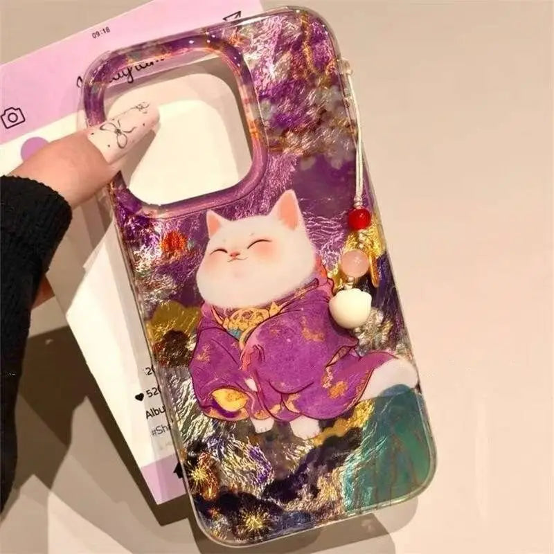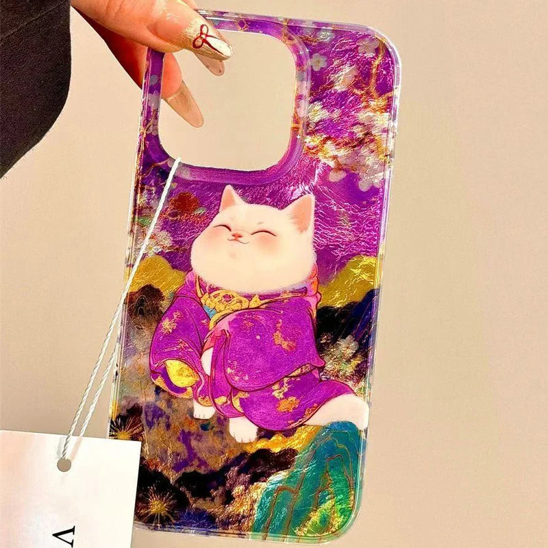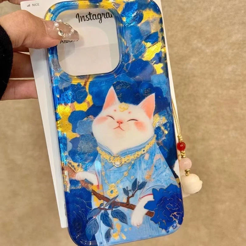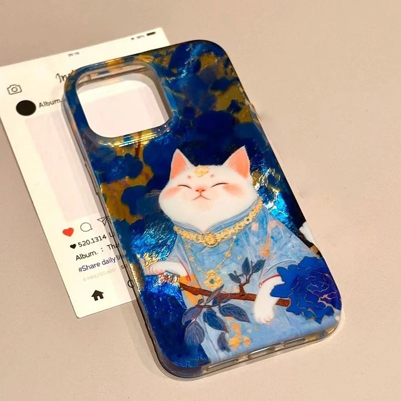A swirl of vibrant blues and gold details frames a serene lucky cat, creating an eye-catching design that feels both playful and refined. Crafted from soft, protective silicone, this cover cushions your phone against bumps and slips, all while showcasing a hint of whimsical charm that’s surprisingly affordable for its luxe look.