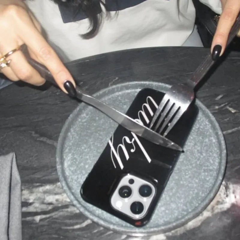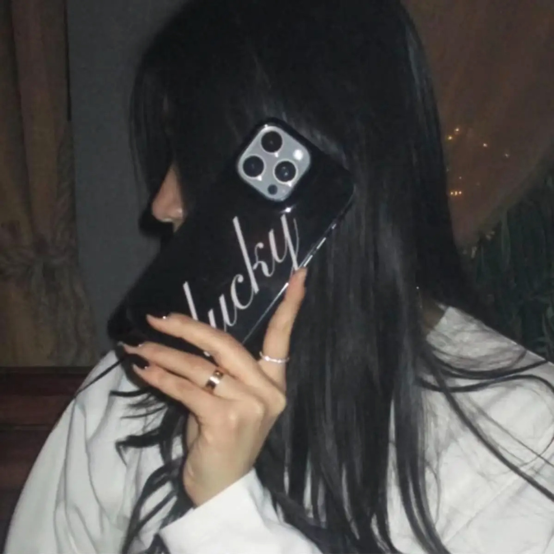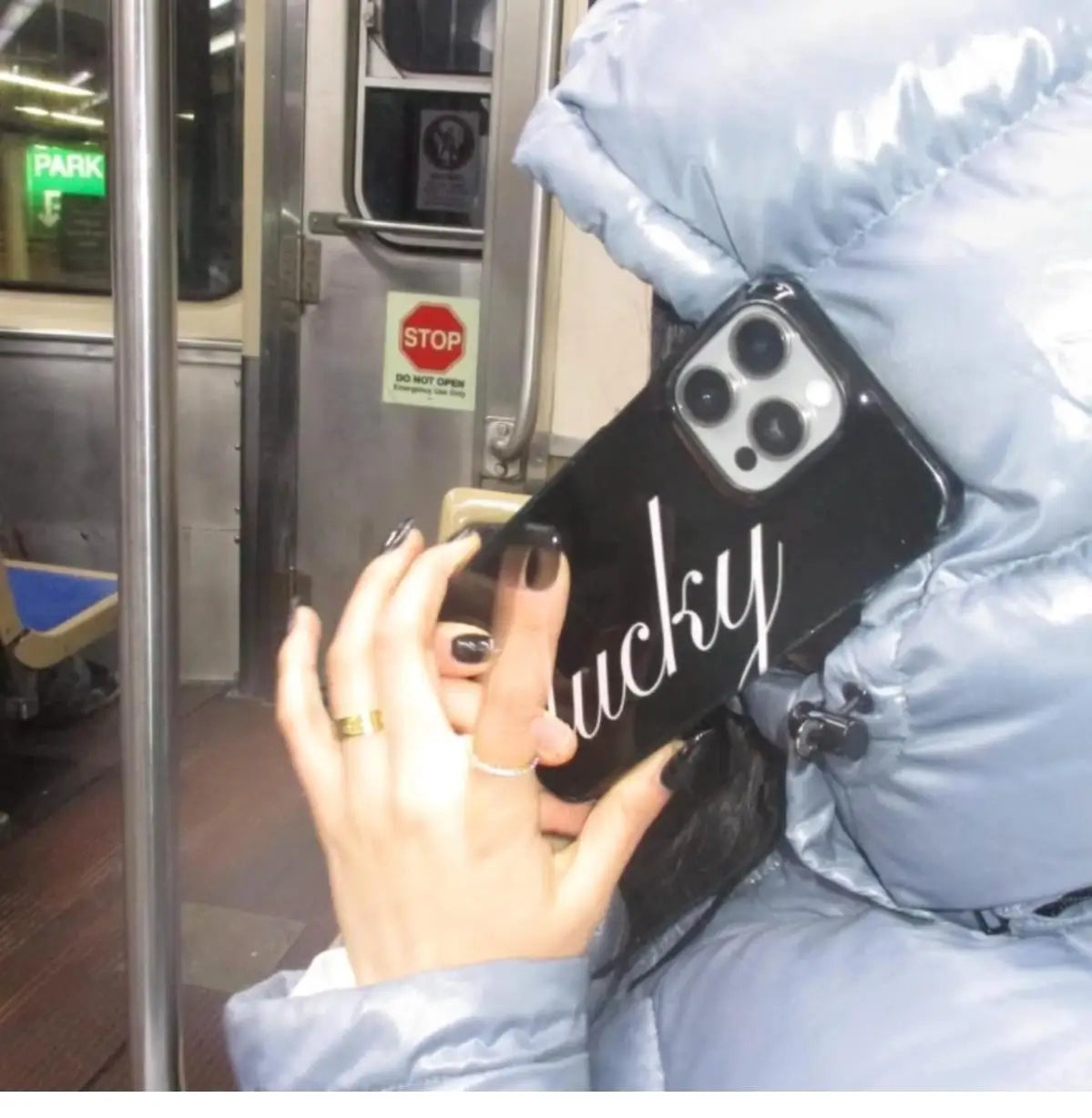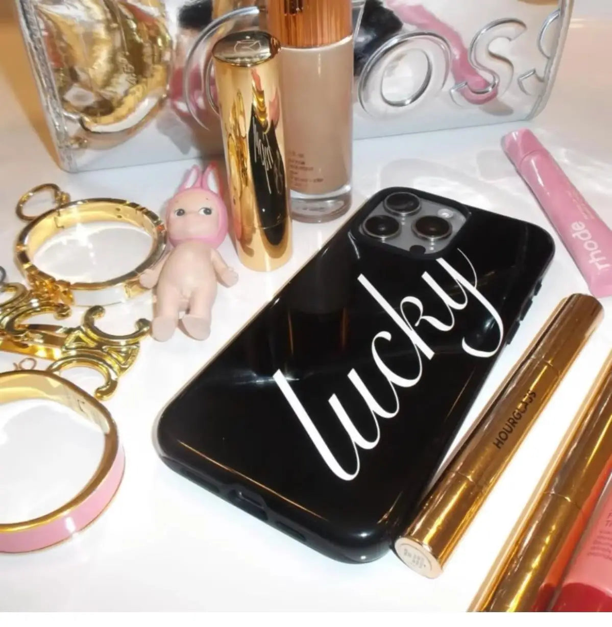 Minimal, glossy, and unapologetically bold — Lucky Noir features clean white typography set against a deep black glass base. Simple at first glance, striking up close, it’s a statement case that feels confident rather than playful.