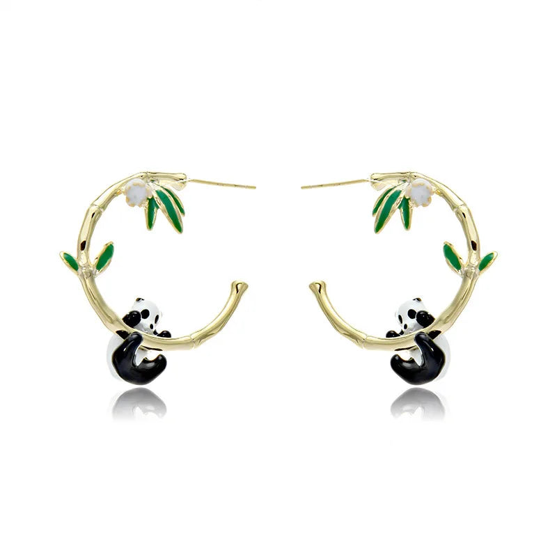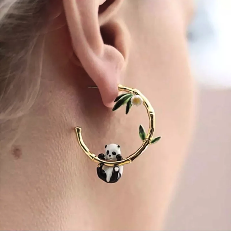 Crafted with the precision of a master jeweler and the imagination of a daydreaming artist, each earring features a gleaming crescent moon cradling an adorable panda amidst a sprig of lush bamboo. It's like having your own personal slice of a magical forest, right there on your earlobe!