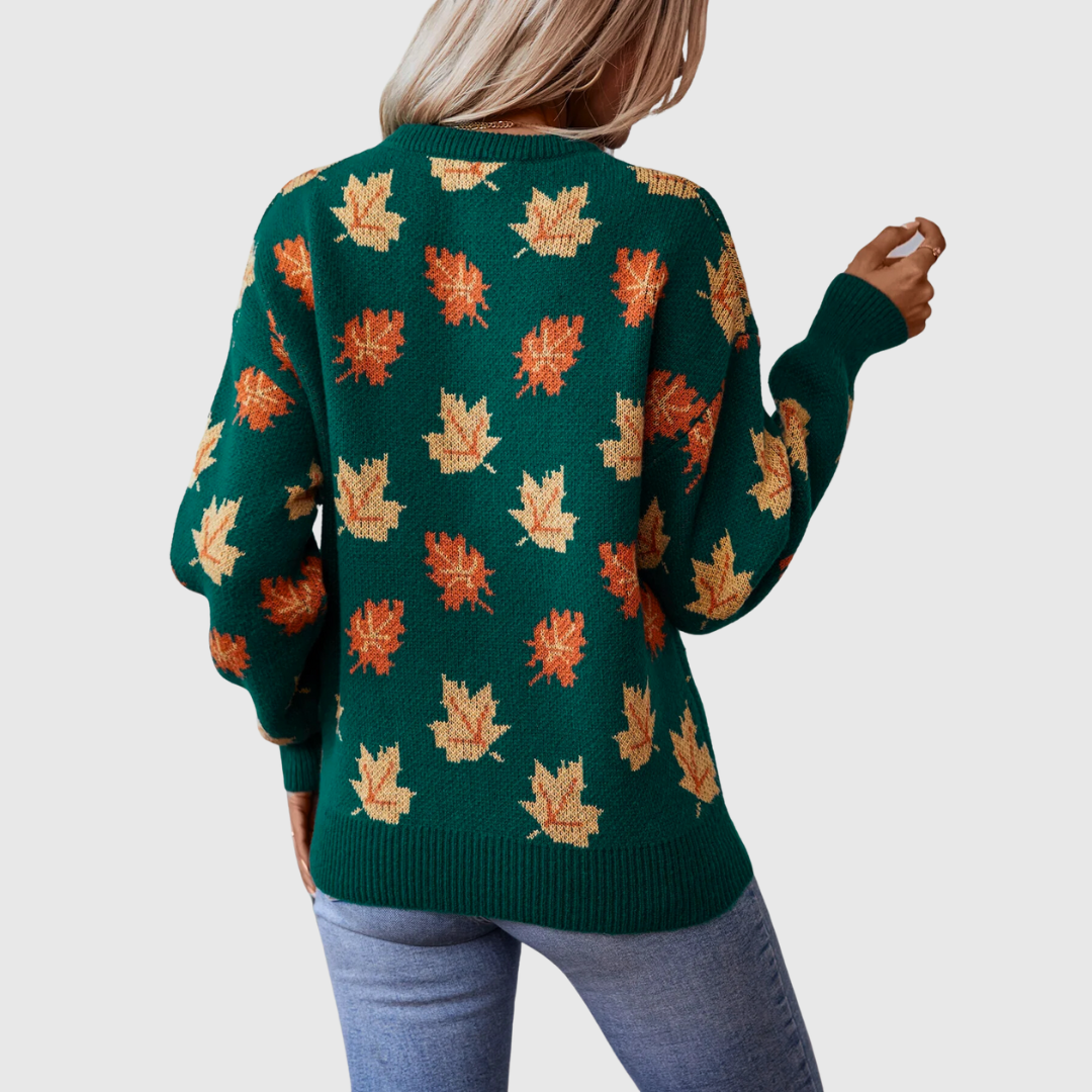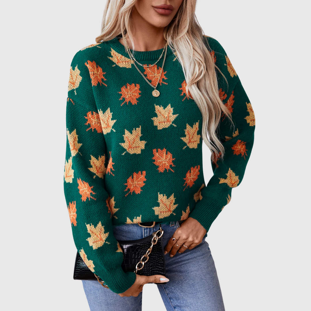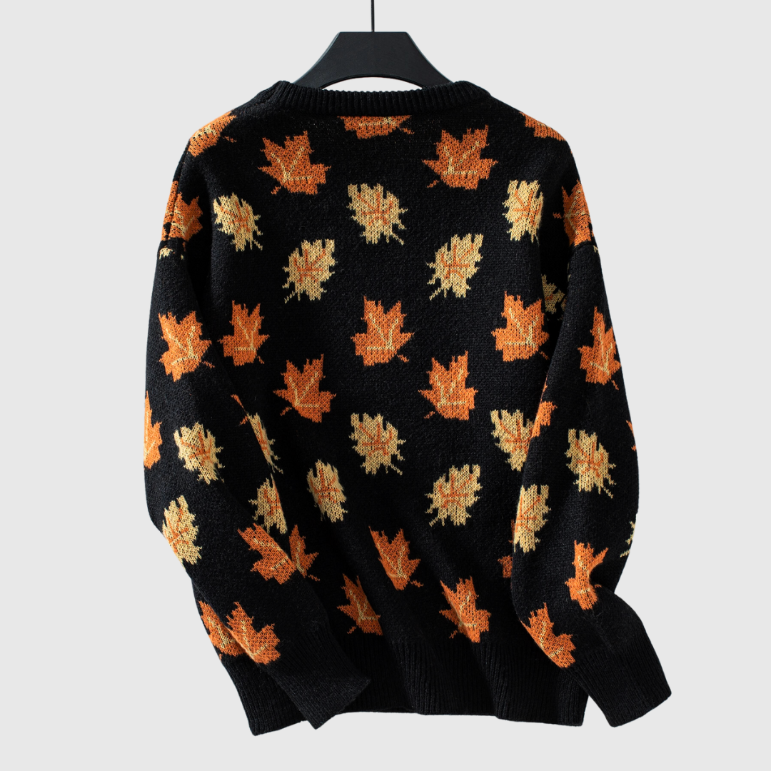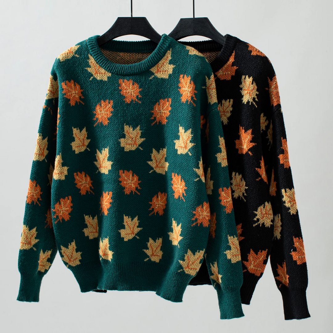 This seasonal staple is designed to keep you warm and stylish throughout the fall and winter months. Crafted from a soft, comfortable knit fabric, this sweater features a charming maple leaf pattern that adds a touch of seasonal flair to your everyday wardrobe.