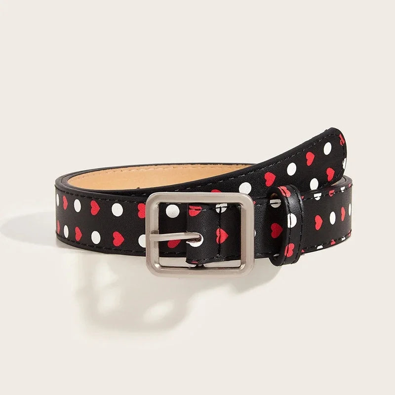 A vintage‑inspired waist belt cut from leather and finished with a classic pin buckle. The bold polka print brings a playful Y2K twist while the stitched edges and metal hardware keep it feeling refined and built to last.