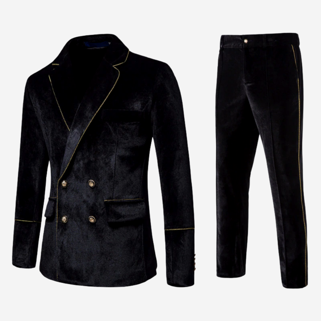 Be the best dressed man in the room with the Tom Adams Velvet Suit. This classic suit is designed to perfection with a 4-button closure, one-button closure pants, and luxurious velvet. Choose from a variety of colors including wine red, blue, and black. This suit set comes with a jacket and pants for a complete look.